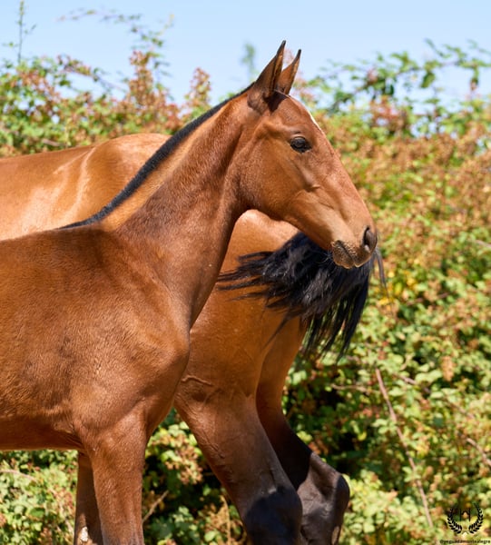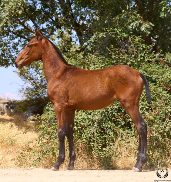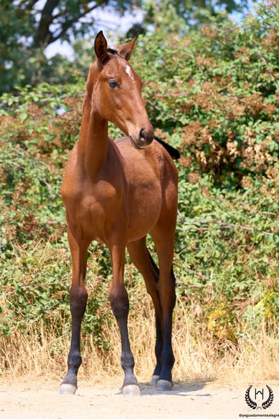 🐴 Giralda is a bay CDE filly with a crescent-shaped marking on her forehead 🌜. She is the sweetest and most affectionate of the crop and enjoys human contact. Born on 15 May, very tall, harmonious, with an ideal build for sport and riding. ♀️ Dam: SEVILLANA CCXI Bay PRE mare, 1.75 m, 100% Cárdenas, registered as a breeding mare with ANCADES. She stands out for her nobility, power, balance and superior movement, and is also confirmed as a riding mare. She transmits quality in everything. Giralda is her first foal. 🧬 Elite pedigree On the sire line appears Fuego de Cárdenas, a PRE legend and a key figure in classical dressage alongside Juan Manuel Muñoz Díaz, known as the “King of Hearts”. 🏅 Achievements of Fuego de Cárdenas: • Spanish National Champion (2008) • Olympic Games Beijing 2008 (6th) and London 2012 (10th – Diploma) • Historic Kür at the 2010 WEG in Kentucky • International CDI victories (Saumur, Wiesbaden) • Young Recommended and Qualified Breeding Stallion ANCCE Also in this line is Utrerano VII, one of the most influential stallions of modern PRE breeding and sire of Fuego de Cárdenas. 🏆 Milestones of Utrerano VII: • Qualified, Improving and Elite Breeding Stallion • Great transmitter of character, scope, strength and elegance • Sire of numerous international PRE horses • Essential genetic foundation of today’s sport PRE On the dam line appears LEGO, legendary stallion of the Yeguada Militar: • Qualified and Improving Breeding Stallion ANCCE ♂️ Sire: Gallo-Spirit (CDE) Recognised stallion, renowned for passing on beauty, nobility, refinement, ease of training and great willingness to work. 🩺 Health guaranteed Any veterinary examination accepted. Raised in freedom, socialised and well balanced within the herd. Dewormed in November. ✈️ National and international transport We work with the best professional equine transport companies. Quotation without obligation. 📙 Documentation: Official ANCADES Studbook / Main CDE Register. 📲 Contact: WhatsApp: +34 639 522 420 Instagram: @yeguadamontealegre 📸 Photography: @almarevisual