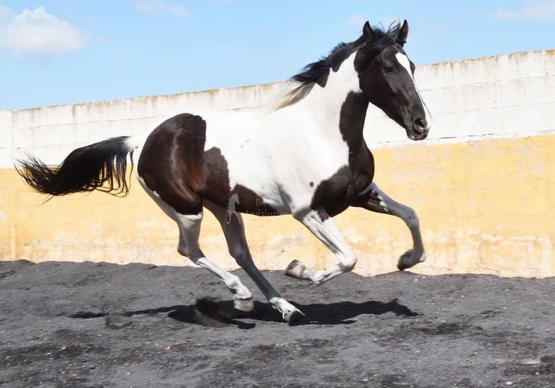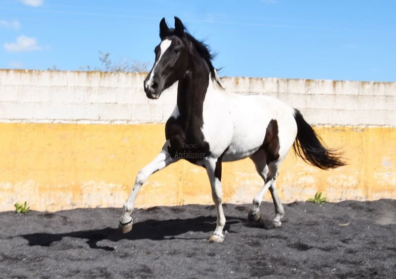 carácter amable, trabajado a la cuerda con silla y brida, listo para ser montado, color especial, buenos movimientos, linaje: los Retamales, Ferrer Rovira, Miura www.elegante-andalusier.com