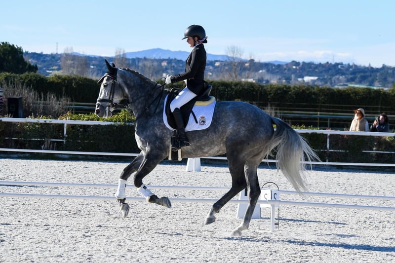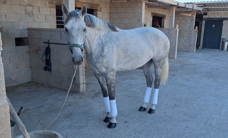 Spanish Sporthorse mare for sale, 7 years old. Excellent gaits and temperament, eager to move forward, and very energetic. Homebred. Gesto CEN (PRE) x Milanda (Oldenburg). She is 1.68m tall. Gray coat, 7 years old (born 2018). She has Level 4, Junior level (shoulders in, leg-yielding, halfpass at both trot and canter, pirouettes, and flying changes). For more information, please contact us via WhatsApp at +34 664 807 693.