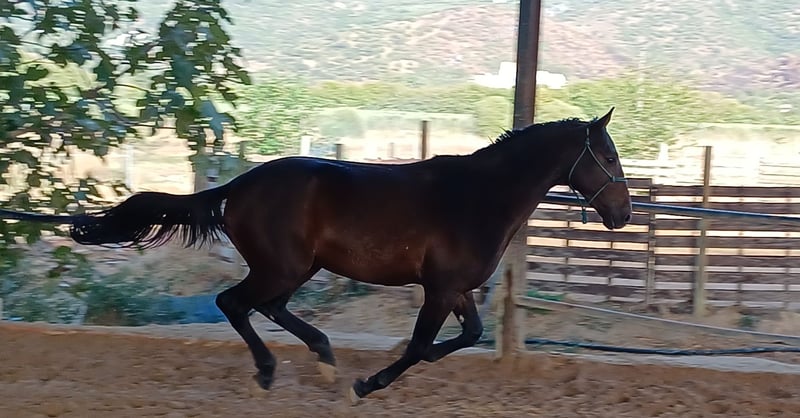 Very gentle foal with excellent movement, ideal for starting out and training under saddle. Lunged only at this stage. Grandchild of Ministro, a great master horse. I am also open to a trade for a minimum 6-year-old horse suitable for a girl beginning in classical dressage, with me covering the price difference.