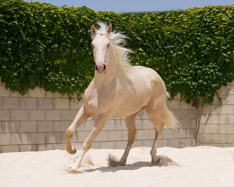 📅 21.04.2023 – CDE bei ANCADES registriert 🐴 Ein einzigartiger und außergewöhnlich schöner Cremello-Hengst, harmonisch, kraftvoll, mit drei hohen weißen Abzeichen und hellblauen Augen. Aktuelle Größe: 1,70 m | Erwartete Endgröße: 1,72 m – 1,75 m Cremello mit drei weißen Abzeichen, blonde Mähne und Schweif | Sehr korrekte Gliedmaßen, starker Rücken, ausgeprägter Widerrist und explosive Bewegungen. 🧬 Elite-Genetik Sohn von Quest of Gold (palomino CDE) – Linie Las Regueras Enkel von Quatercream IE x Quarterback | Großmutter: Eva, polnisches Warmblut palomino Cremello-Genetik (ee CRCR) GARANTIERT → 100 % Nachkommen mit Verdünnungsfarbe • Mit einfarbigen Stuten: Palomino, Buckskin, Smoky Black • Mit verdünnten Stuten: Cremello, Perlino, Smoky Cream 🧠 Charakter & Umgang vorbildlich Grundausbildung: Arbeit an der Longe in allen drei Grundgangarten, auf beiden Händen Umgänglich, brav beim Schmied, verlade- und transportsicher Ungekörter Hengst mit ruhigem, sozialem und anpassungsfähigem Temperament – nie gedeckt 🎯 Vielseitigkeit & Bewegung Ideal für Dressur, Springen oder vielseitigen Sporteinsatz Großzügige, elastische Bewegungen mit guter Schulterfreiheit Funktionaler Junghengst mit Präsenz, Balance und natürlicher Noblesse ✅ Gesundheit garantiert Sehr gute Ankaufsröntgen | Tierärztliche Untersuchungen werden akzeptiert ✈️ Nationaler und internationaler Transport mit professionellen Unternehmen. 📲 Direkter Kontakt: +34 639 522 420 📷 Fotografie: @almarevisual