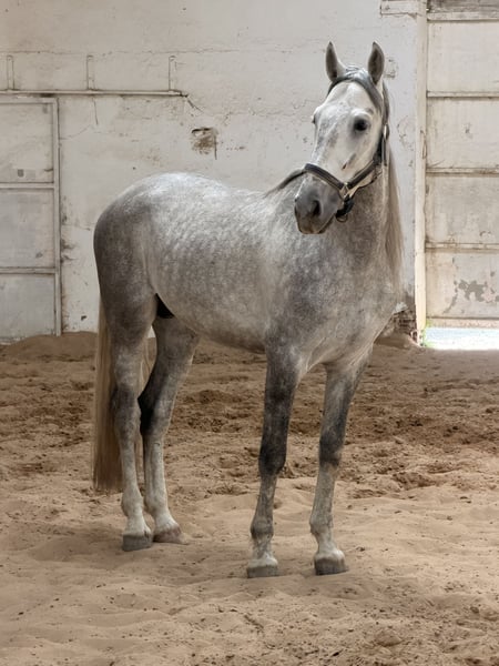 Se vende potro entero pura raza Española inscrito en el ANCCE alto reproductor, actualmente nunca a cubierto, alzada 1'68 a la cruz tiene 4 años cumple 5 el 29 de abril, bien montado y honrrado, montando adolescentes, puedo pasar videos para su comprobacion y ver como se mueve el caballo y como va montado, recien herrado y recien rebisado de la boca, caballo muy sano y con mucha vida, genetica muy considerada, yeguada fernandez de la vega, su padre en varios concursos consecutivos del SICAB. Es todo una joya con movimientos muy buenos. Cualquier duda puedes hablar por whatsap o llamada telefonica. El precio del caballo mejor hablar por tlfno 692411575 Presentamos un magnífico semental de deporte español, nacido en 2021, que combina potencia, elegancia y un carácter excepcional. Este tordo rodado de 168 cm de alzada es un ejemplar muy prometedor para la disciplina de doma clásica, con una base sólida y un movimiento natural que invita a desarrollar todo su potencial en el deporte. Su linaje, propio de la tradición española, garantiza un talento innato para la doma y la competición. Es un caballo bien trabajado, con una educación avanzada en doma clásica, mostrando una actitud tranquila, colaboradora y muy bien adaptada a la vida de competición. Ideal para jinetes que buscan un caballo con futuro en el ámbito de la doma, con una presencia imponente y un carácter equilibrado. Perfecto para entrenar y competir en niveles altos, o para un jinete que desee formar un caballo con gran potencial deportivo.