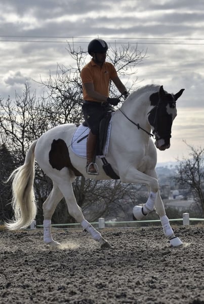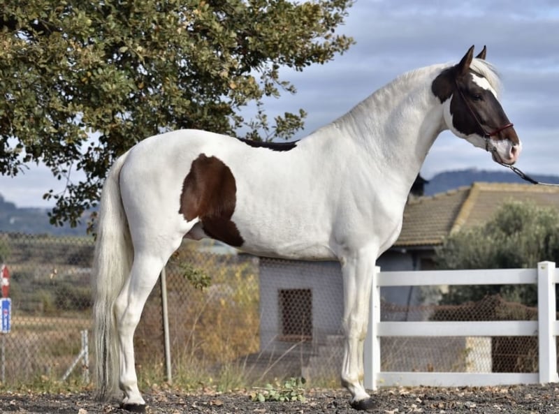 Opportunity for sale! We are offering a beautiful Spanish sport horse stallion, born in 2019. This impressive gelding stands at 16.1 hh and is known for his excellent temperament and suitability for dressage. Don't miss the chance to acquire a stallion with great potential in the equestrian sport world. For more information, please do not hesitate to contact us. 75% PRE and crossbred pinto