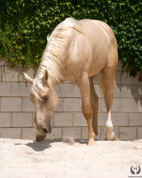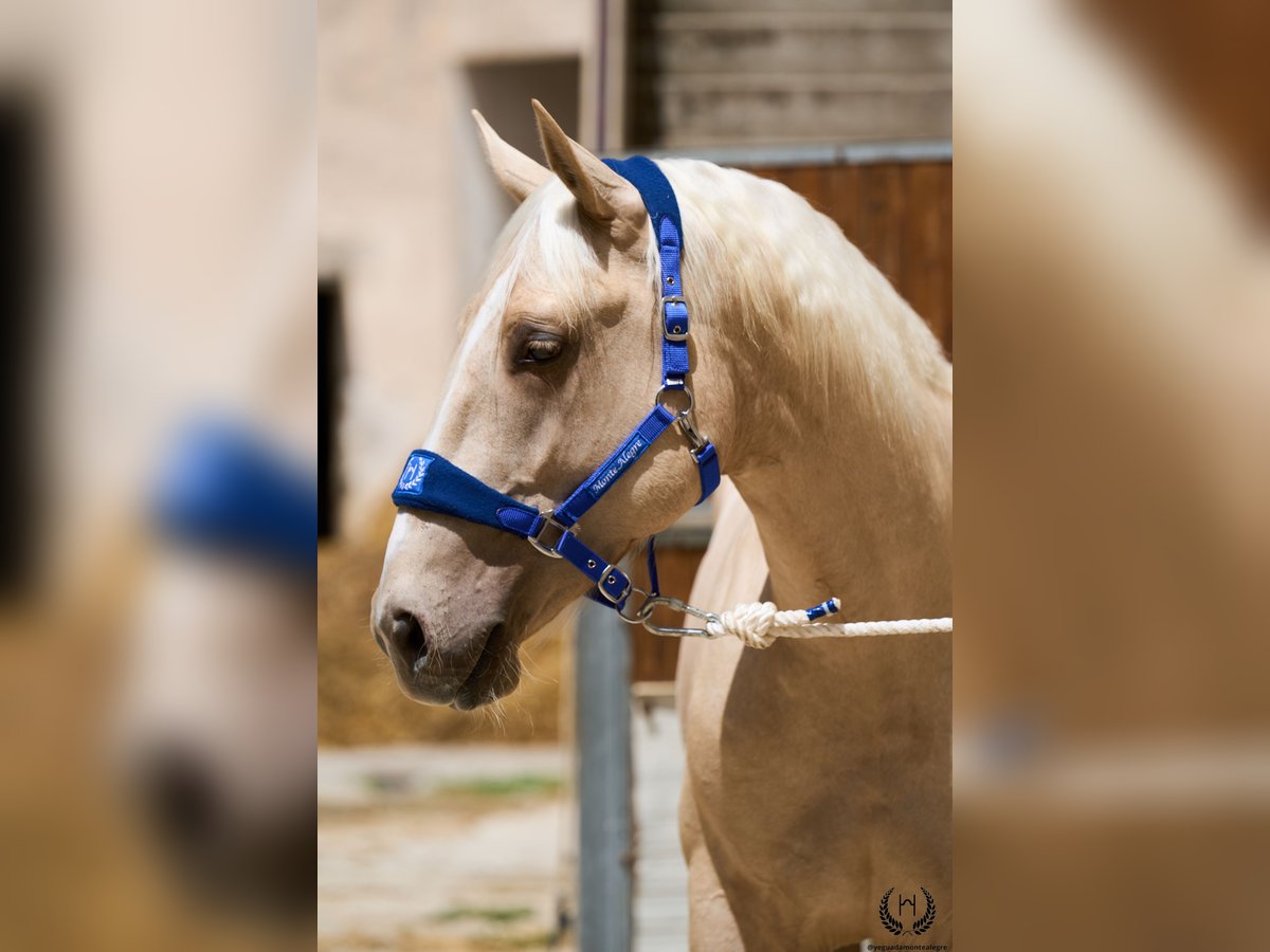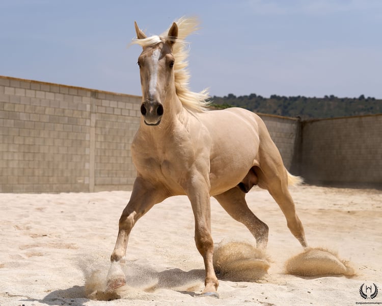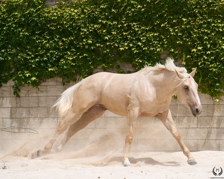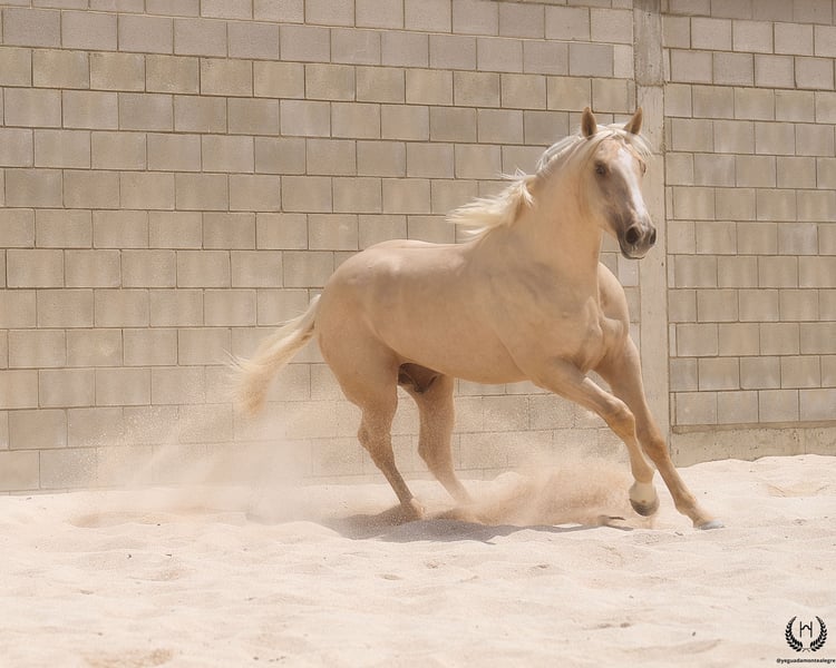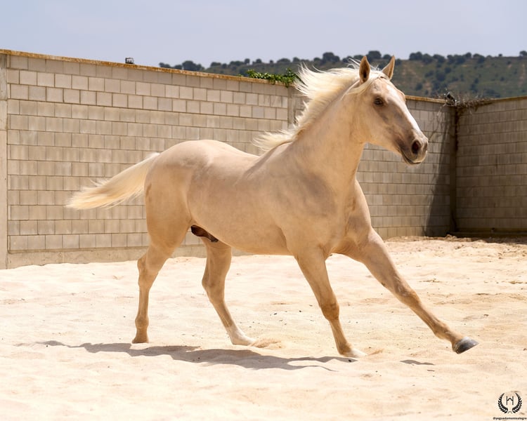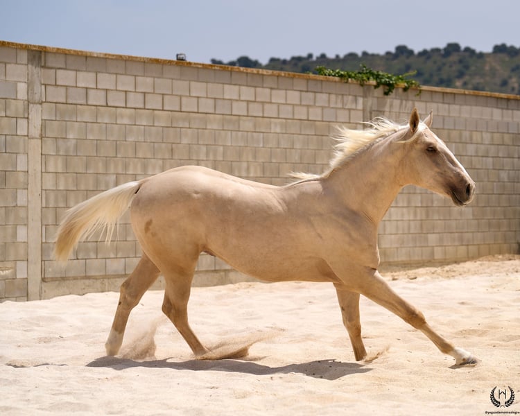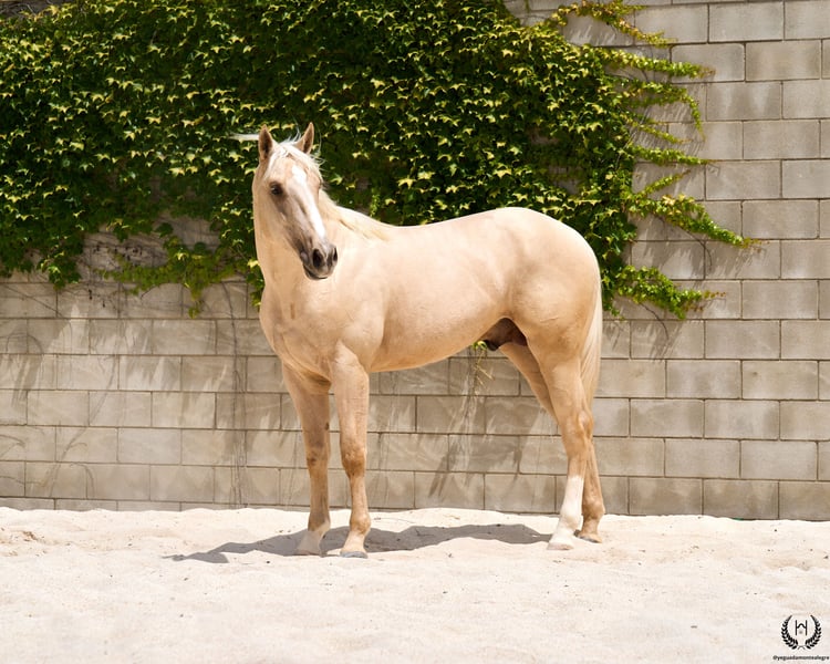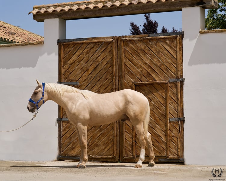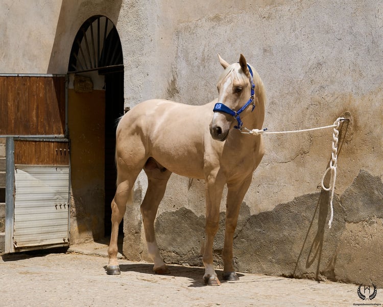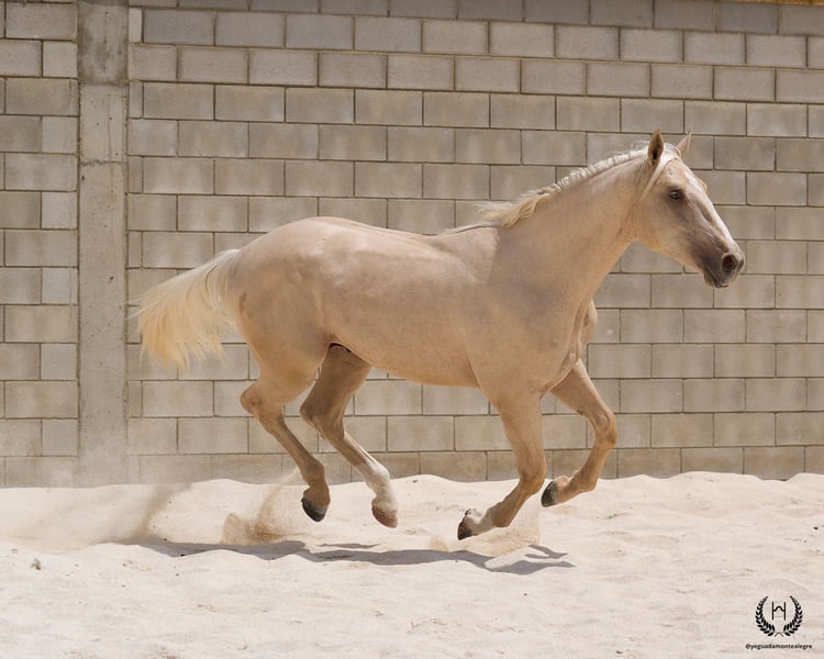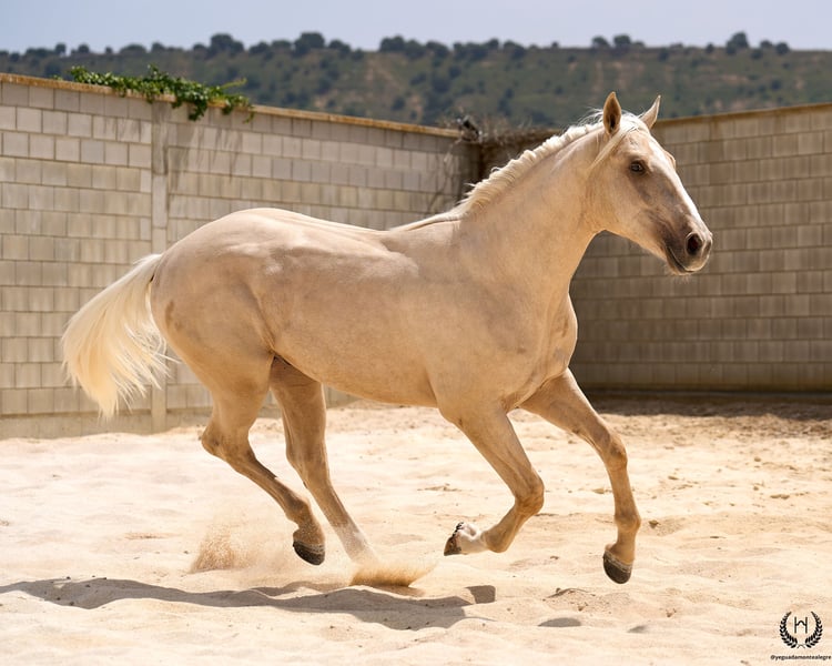 Are you looking for a horse that has it all? 💫 Amazónico Monte Alegre is the perfect fusion of beauty, athletic character, and elite genetics. 🐎 📅 14/04/2023 – 1.69 m – Gelding 📘 CDE (ANCADES) ▫️ Training level: Well-handled young horse, works on the lunge in all three gaits and on both reins. Impeccable stable manners: allows hoof trimming, loads and unloads from the trailer without difficulty. ▫️ Striking conformation: With a current height of 1.69 m, still developing and expected to reach 1.72 m at 6 years old. His brilliant metallic palomino coat, wide blaze with continuous stripe, and two white socks make him a true visual standout. Athletic and well-balanced build: correct limbs, strong topline, defined withers, sloping shoulders, and a powerful hindquarter. Ideal for show jumping and dressage. ▫️ Premium genetics: Son of QUEST OF GOLD IE (palomino CDE from the prestigious “Las Regueras” stud) and grandson of the legendary Quatercream IE x Quarterback. Top diluted Central European bloodlines. His maternal granddam adds the smoothness and elegance of the Polish warmblood EVA x MC Jonnas, from whom he inherits his unique ivory-toned palomino coat. Genetic coat color: “ee _ _ CRcr”. ▫️ Exemplary temperament: Gelding, gentle and well-balanced. Travels well by truck or van, integrates easily into new groups, and is respectful in daily handling. ▫️ Functional versatility: Big, elastic, and powerful gaits. Perfect for dressage, jumping, or leisure riding. A complete and harmonious horse with a true sporting spirit. ▫️ Health guaranteed: Any veterinary examination accepted. Transparency and trust are our core values. 📦 National and international transport available. Request a quote with no obligation! 📲 Contact: 🟢 WhatsApp: +34 639 522 420 🔴 Instagram: @yeguadamontealegre 📸 @almarevisual