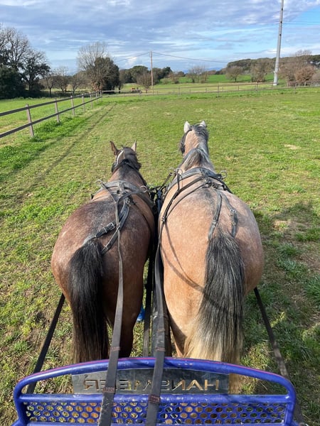 CDE 75% pre 25% kwpn 4años entra en 5 en 2026 castrado 158 altura montado paso trote y galope en pista ordenado y con buena puesta en mano saltando un poquito saliendo muy bien al campo y iniciado en el enganche a tronco el padre hace salto y doma y esta compitiendo en las 2 disciplinas