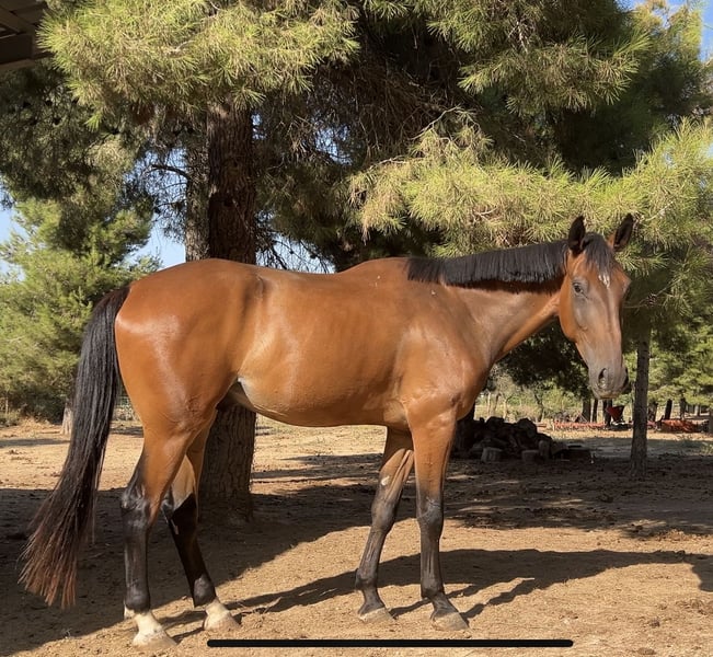 **For Sale: Spanish Sport Horse** Unique opportunity for horse lovers! An impressive 4-year-old Spanish sport colt is offered for sale, ideal for competitions and training. Recently backed, photos and videos can be sent. **Features:** - **Gelded:** Yes - **Year of Birth:** 2021 - **Color:** Bay - **Height:** 178 cm - **Discipline:** Show Jumping This horse combines a good head, strength, and great potential in jumping. It is a large horse, almost 1.80 at the withers, super agile due to its height. Perfect for riders looking for a trustworthy companion with a balanced character. For more information, feel free to contact us. Don’t miss this opportunity to acquire an excellent horse!
