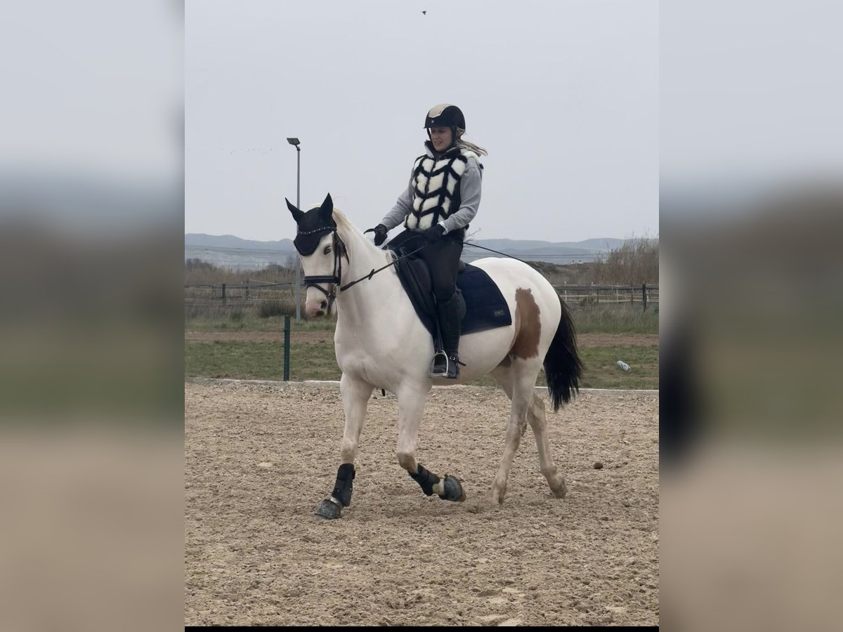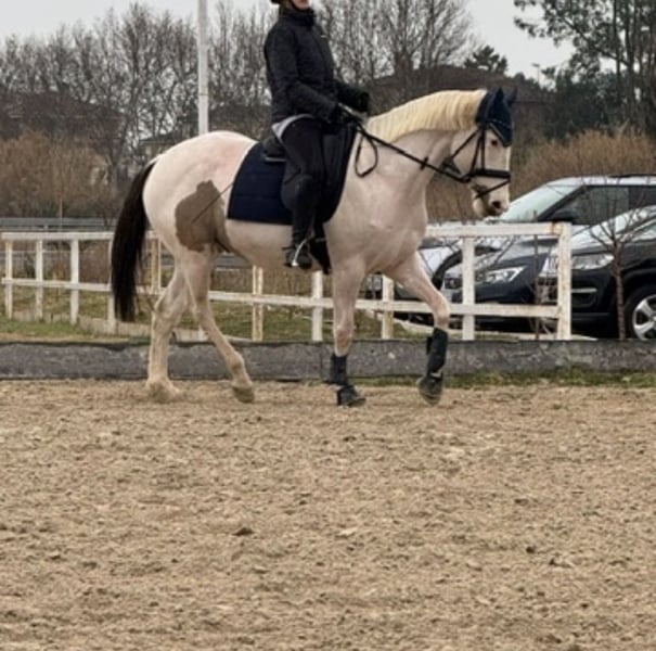Onderhandelingskans voor een sportpaard! De vacht is pío wit met bruine vlekken, één bruin oog en één blauw oog, en de zwarte staart maken het een echt uniek exemplaar. Goed bereden, ideaal voor alle soorten ruiters. Dit gecastreerde paard is geboren in 2020 en heeft een stokmaat van 1,58 m. Stap, draf, galop, achterwaarts, binnenwaarts, overgangen. Het komt ook in het veld. Daarnaast heeft het al enkele crossen gedaan. Het valt op door zijn karakter: zeer rustig en nobel. Maakt geen slechte gebaren. Geen problemen met hoefsmid, op de trailer zetten of scheren. Ik verkoop het omdat ik het financieel niet meer kan onderhouden.