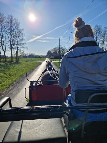 Ich verkaufe meinen 8- jährigen Wallach Novato. Novato hatte leider im September 2025 ein Hufgeschwür (Röntgenbild aus Oktober vorhanden) leider habe ich mich dann selbst im November verletzt. Novato wird jetzt seit Mitte Februar wieder gearbeitet/ bewegt. Deshalb wird er noch als untrainiert & weit unter Wert abgegeben. Er ist von mir schonend ausgebildet worden: - Stockmaß ca 1,63 - E Fertig - ein-& zweispännig gefahren (feizeitmäßig) - kennt regelmäßige Ausritte (alleine und in Begleitung mit zweitem Pferd) - kennt auch schon Sprünge (Gelände & Reitplatz) - absolut Schmiede- & Verladefrom - Tierarzt & Osteopatie auch komplett brav - kinderfreundlich - er hat spanische Papiere - Tetanus & Influenza geimpft - sehr Menschenbezogen Novato wurde im Oktober 2025 vom Pferdedentisten behandelt. Aktuell steht er von Morgens ca 6 Uhr bis Abends 18 Uhr mit einem Shetty auf dem Paddock. Nachts stehen alle im Stall. Ein Großteil von seinem Zubehör (Hufschuhe - Trensen - Sattelschrank - Decken - Fahrgeschirr- Schabracken - Longierzubehör etc.) kann gegen einen Aufpreis mit erworben werden. Gesucht wird ein Mensch mit Herz, Pferdeverstand und Freude an der Arbeit mit einem jungen Pferd, der diesen liebenswerten Wallach weiter fördert. Näheres im Persönlichen Gespräch vor Ort. Seit Mitte Februar wird Novato wieder Trainiert / Bewegt.