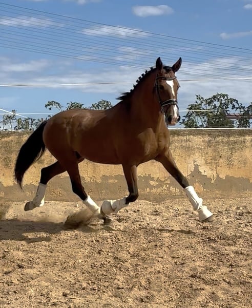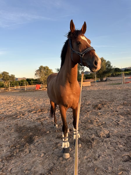 This is a horse to enjoy immensely. He has a lot of nobility and can do everything with him—whether for hacking, dressage, or jumping. He has no issues with other horses. He is not spooked by anything and is not easily scared. Refined and easy to ride.