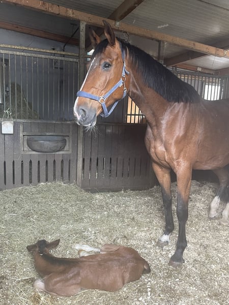 Due to herd reduction, we are offering our 9-year-old breeding mare Isidora W by Orlando van de Heffinck x Casall x Coronado x Laurin, from the successful Holsteiner performance lineage 730B. Initially awarded the district premium and carefully trained in sport up to M-level show jumping, she was used as a broodmare in our small private stable. In 2020, she foaled her first filly by Vingino (by Voltaire; already successful in show jumping competitions). She was followed by two colt foals by Quel Homme de Hus (by Quidam de Revel) and Quiwi Dream (by Quidam de Revel). Currently, the mare is pregnant by United Way (by Uriko). The breeding stallion is highly successful in sport up to 1.50 m, and the Holsteiner Verband highlights the following qualities he passes on to his offspring: a rectangular conformation, athleticism, positive rideability, personality, and attitude. From the Holsteiner mare line 730B, numerous sport horses have been bred. Isidora W’s dam has produced eight other offspring, including the approved stallion Consall B (by Contender), the successful show jumper Napoleon 476 (by Numero Uno), who currently competes internationally under a young Algerian rider up to 135 cm, and Quiliano (by Q-Verdi), who was sold at the Holsteiner licensing auction as the most expensive non-licensed stallion. This tall, noble broodmare has a strong character, and her previous offspring are tall, talented, and endowed with great scope. As she takes well, there is every reason to expect further successful breeding. We are selling Isidora W in foal directly from the breeder’s hand, and it is very important to us that she finds a good home where her excellent maternal line will be appreciated and continued. Please only send serious inquiries. Feel free to contact us by phone at the provided mobile number.