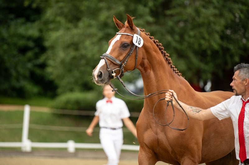 Ta elegancka klacz pochodzi od Uriko x Caretino x Rebel Z, jest pełna jakości i energii, a w 2024 roku miała już źrebię. Samodzielnie wytrenowałem ją jako 4-latkę, a na turniejach startowała do 1,20 m. Przy skokach wykazuje ostrożność, dużą pewność siebie i zapał. Technicznie opanowała ćwiczenia do klasy L, jest bardzo delikatna w jeździe, głównie za pomocą siodła. Podczas pracy na ujeżdżalni jest bardzo ambitna i zmotywowana, nie radzi sobie dobrze z presją jeźdźca i jest przeznaczona tylko dla doświadczonych jeźdźców. Miała już piękne źrebię od Keatona. Zarejestrowana jako klacz hodowlana w Austrii z doskonałą oceną 7,71 punktów, co jest naprawdę imponujące jak na pochodzenie skoncentrowane na skokach. Ponieważ wycofuję się z jeździectwa, a moje serce należy do koni północnoniemieckich, postanowiłem ją oddać.