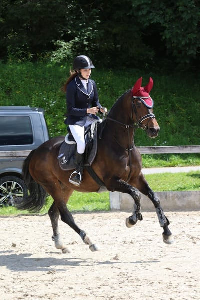 Since my Duchess is no longer suitable for jumping or dressage training due to minor health issues, I would like to find her a loving new home as a leisure or companion horse. Duchess is still fit and motivated to work but can no longer handle the demands of competitive jumping or dressage. She enjoys groundwork, loves relaxed rides in the countryside, and adores cuddling more than anything. ☺️ Duchess has been in a HIT active stable for about two years, where she feels very comfortable. She tends to be dominant in her herd but gets along well with everyone. She is a pro at loading, stands perfectly for the farrier, is very easy to handle, and is simply a loyal soul. Only to the best home! If Duchess has caught your interest, please feel free to contact me at +43 664 9256750 to learn more.