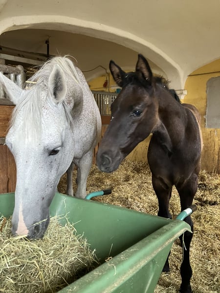 Ze względu na okoliczności poszukujemy dla naszej doświadczonej klaczy hodowlanej rasy Holsztyn nowego, wspaniałego domu. Do tej pory zawsze była łatwa w obsłudze, nie miała żadnych problemów z ciążą, porody przebiegały bez komplikacji, a źrebięta do odsadzenia rozwijały się bezproblemowo. Jest bardzo przyjazna i łagodna, pozwala na prowadzenie przez dzieci, można ją dotknąć wszędzie, zna pastwisko i boks, i po prostu lubi być w towarzystwie. W stajni stanowi prawdziwą oazę spokoju dla innych, dzięki swojej opanowanej naturze w grupie zwykle zajmuje wyższą pozycję. Sama osiągnęła sukcesy w skokach do 1,20 m, prezentując się z elegancją na konkursach, co czyni ją również spokojną podczas transportu i w obcych miejscach, takich jak pokazy źrebiąt. W ostatnich latach nie była już użytkowana do jazdy i jest sprzedawana wyłącznie jako klacz hodowlana. W zeszłym roku, po wielu latach opieki nad źrebiętami, zasłużyła na przerwę, więc ją zaprzestaliśmy kryć, ale w każdej chwili można ją ponownie zapłodnić. Potomstwo z ostatnich trzech lat można chętnie obejrzeć; wszystkie młode są niezwykle przyjazne, odważne i z dużą radością galopują.