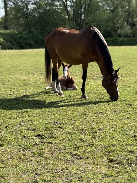 Broodmare "Cabana 10" – Performance-tested pedigree, ideal for an ambitious start in breeding I am offering my broodmare Cabana after foaling for sale. For me, a suitable home is far more important than the price – I am looking for someone who wants to start or further develop their breeding program with her. Pedigree: Colestus – Carrico – Lord Kemm – Distello – Gontard Strong maternal line: Mother: 2× Reserve at the Federal Championships Multiple international S-class placings Successfully competed at the highest level under saddle (including under an Olympic gold medalist) Breeding record: Her last foal was purchased directly by the breeding association The current pregnant foal is NOT included in the purchase price and can be delivered empty or re-foaled with a desired stallion upon request and for an additional fee. Background: Cabana was retired from sport after a meniscus injury in show jumping and has been dedicated to breeding since. She has proven to be a reliable and valuable broodmare. Why I am offering her: I already have two other mares, including a daughter of Cabana, so I want to continue to secure this successful bloodline. What makes Cabana special: Highly interesting, modern show jumping pedigree Proven, performance-oriented maternal line Already successful offspring Ideal for breeders with ambitions but limited budget Location: Pinneberg I am open to fair negotiations and various options – my main priority is that Cabana finds a good new home and continues to be supported. If you are genuinely interested, I look forward to hearing from you and having a personal exchange.