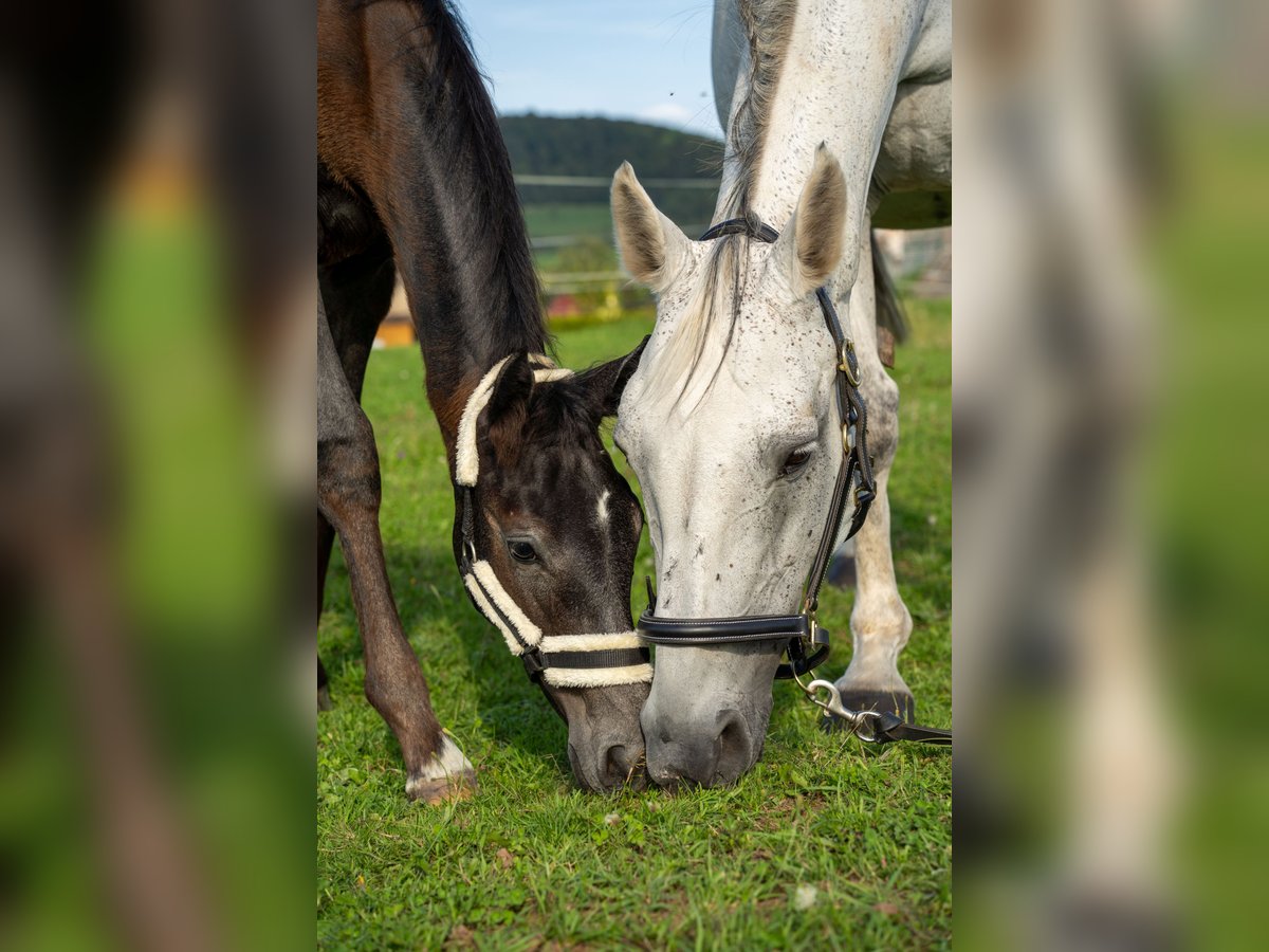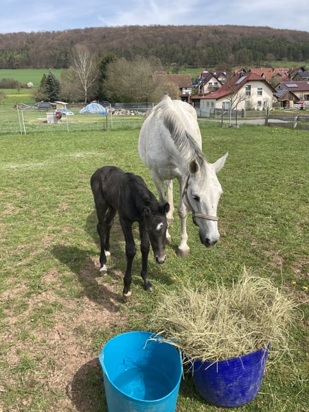 Verkaufen unsere Holsteiner Zuchtstute aus dem Stamm 18A2. Vater Clearway von Capitol I abstammend, Mutter Jodett von Lavall II abstammend. Zoe ist 2007 geboren, hat ein Stockmaß von ca 166 cm und ist seit 12 Jahren bei uns. Sie hat jeweils 2023 & 2024 ein Stutfohlen zur Welt gebracht. Der Nachwuchs kann besichtigt werden. Zoe ist eine tolle Mama, die immer auf ihre Fohlen achtet. Sie hat beide Geburten alleine in der Nacht gemeistert und die Fohlen haben sofort nach dem aufstehen getrunken. Zoe wurde 5 jährig von ihren Züchtern angeritten und kam dann zu uns. Wir haben sie auch weiter geritten, aber zeitlich hatten wir es nicht immer kontinuierlich geschafft. Sie hat keine gesundheitlichen Beeinträchtigung. Bei uns lebt sie in einer Paddockbox mit täglichem Auslauf auf der Weide oder auf einem Sandauslauf. Warum verkaufen wir sie? Da wir momentan zwei Zweijährige Stuten und eine Dreijährige Stute haben, ist unser Kontingent an Jungpferden erstmal gedeckt. Gerne möchten wir einem Züchter die Möglichkeit geben, sich den Traum vom eigenen Fohlen zu erfüllen. Dies ist mit dieser Stute möglich. Wenn Du ernsthaftes Interesse hast, dann melde dich einfach. Gerne können wir auch weitere Bilder und Videomaterial zusenden. Standort 98617 Stedtlingen Rhönblick