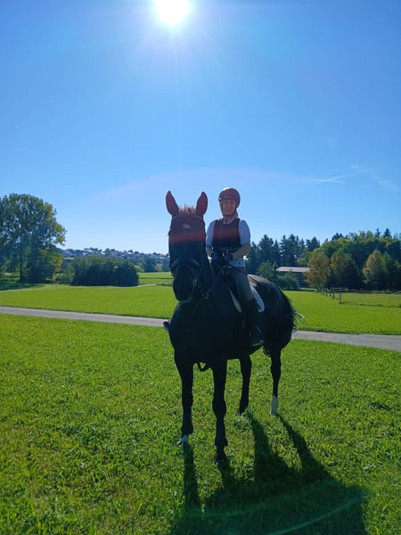 Aus Zeitgründen geben wir ein ehemaliges Springpferd, das zwei Fohlen hatte und danach meist auf der Koppel stand und ab und zu ins Gelände geritten wurde an passende Person ab. Die Stute ist sehr gehfreudig, teilweise nervös bei unbekannten Dingen. Sie ist aber klar im Kopf, ist bei uns nie gestiegen, hat nicht gebockt . Sie lässt sich ohne Kraft reiten und führen. Auf Grund ihrer Größe und Sensibilität nicht für Anfänger geeignet. Die Stute ist artig, gut erzogen und noch richtig fit. Bei Interesse gerne anrufen!
