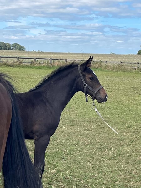 Typical and modern filly by Zirocco Blue x Diarado x Carthago x Quidam de Revel from the proven Holsteiner mare line 18B1. The dam line has already produced numerous licensed stallions and sport horses: MMM Ella is the mother of the licensed stallion Constant in Holstein. She also produced the mares Palisa and Ulla V when paired with the stallion Cor de la Bryère. Palisa herself competed at S-jumping level and is the mother of the successful sport mare Queen Liesa (Quidam de Revel) under Felix Haßmann. The full sister to Constant, Ulla V, is the mother of two licensed stallions in Holstein, foremost among them Quantum. Additionally, MM U-Cartana MS has already produced a licensed stallion in Zangersheide. The foal is only offered to the very best, supportive hands due to her quality. For serious inquiries, please contact me by phone: 0174/1724979.