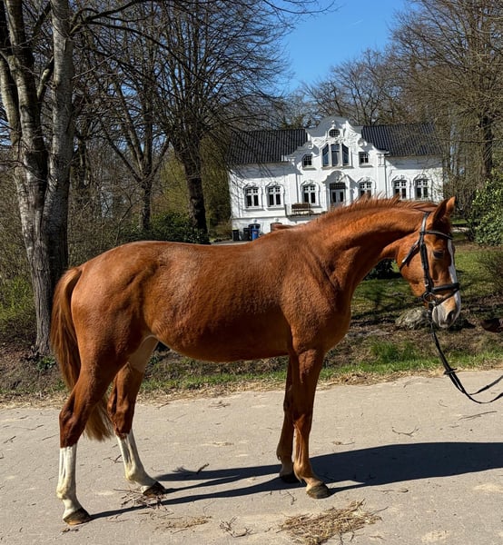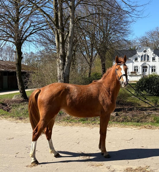 Vielversprechende Holsteiner Stute aus bewährter Mutterlinie zu verkaufen Zum Verkauf steht eine elegante Holsteiner Fuchsstute, geboren im Jahr 2023. Sie überzeugt durch ihre gute Konstitution, ein harmonisches Exterieur sowie ein freundliches und ausgeglichenes Wesen. Mit einem aktuellen Stockmaß von ca. 165 cm ist sie bereits gut entwickelt und zeigt vielversprechendes Potenzial, insbesondere im Hinblick auf die Zucht. Sie stammt aus dem begehrten Stamm 104a. Ihre Mutter ist unter anderem die Halbschwester von Chaka Chala. Darüber hinaus stammen zahlreiche weitere erfolgreiche Pferde aus dieser bewährten Mutterlinie. Die Stute ist bereits angeritten und präsentiert sich im täglichen Umgang sehr sozial, menschenbezogen und unkompliziert. Aufgrund eines Knorpelschadens, der durch ein Trauma verursacht wurde, ist sie nicht für den sportlichen Einsatz geeignet. Für die Zucht stellt sie jedoch eine äußerst interessante Option dar. Aktueller TÜV liegt vor. Bei Interesse oder für weitere Informationen sowie zur Vereinbarung eines Besichtigungstermins stehe wir gerne zur Verfügung