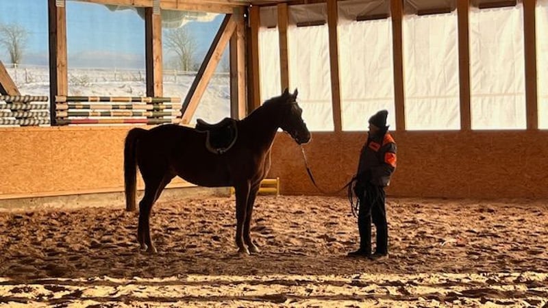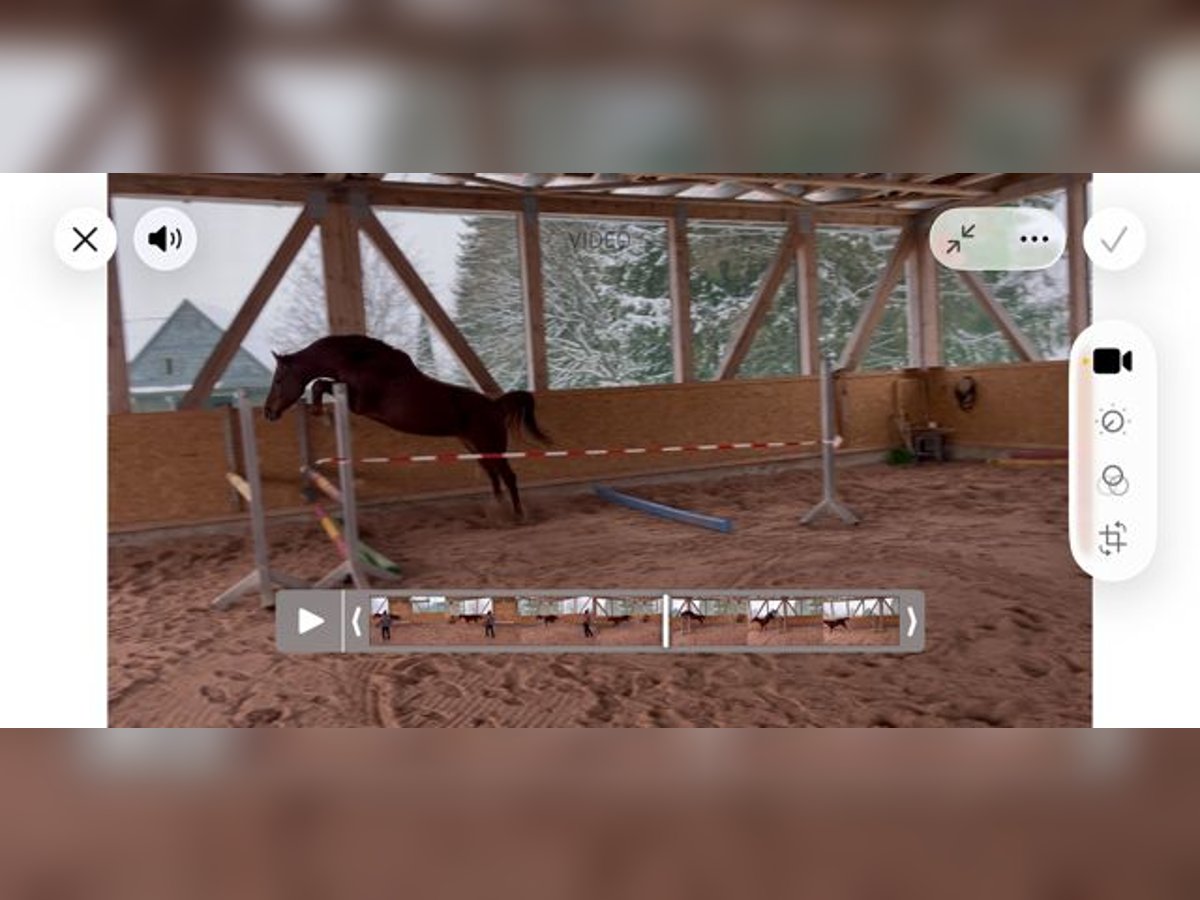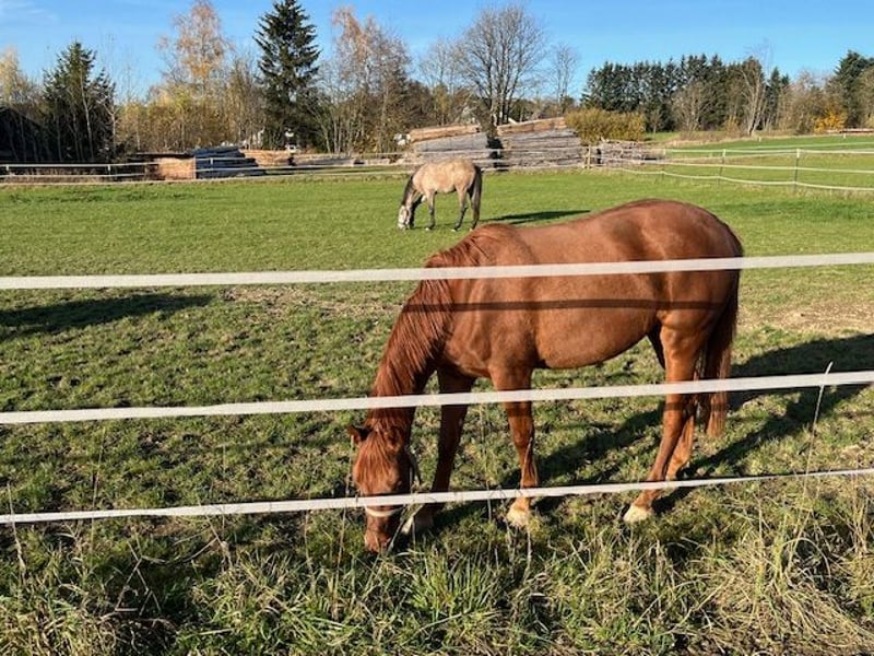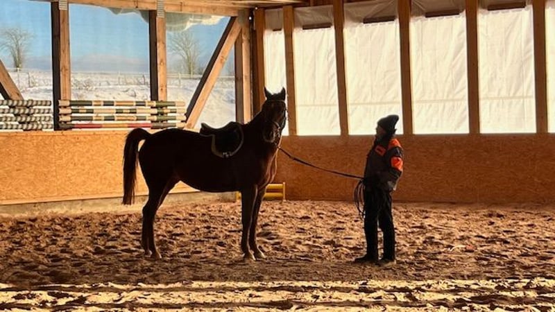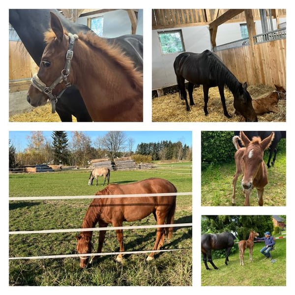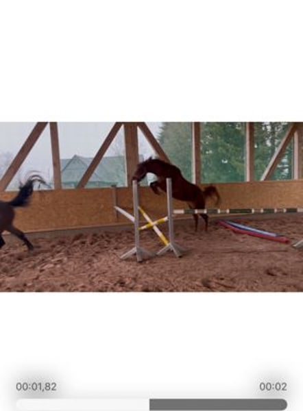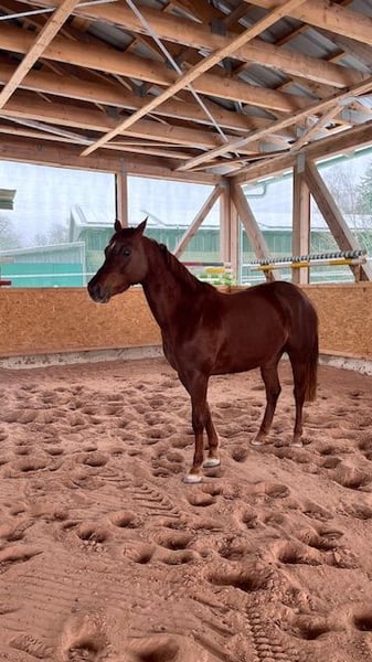 Wir sind private Hobby-Züchter seit 30 Jahren mit viel Liebe zur Leidenschaft. Können auf viele erfolgreiche Nachkommen unserer Zuchtstuten zurückblicken. Diese Stute wurde im Mai 2022 geboren. Beim Freispringen zeigt sie jetzt schon ihr absolutes Können: - unerschrocken gegenüber Hindernissen, - top Beintechnik - immer Lust auf mehr ohne Druck Seit Dezember 2025 führen wir sie langsam zur Vorbereitung an das Anreiten heran. Sehr gelehrig, aufmerksam und sehr ruhig geht sie an diese neuen Aufgaben heran. Auch der ihr aufgelegte Sattel hat sie nicht irritiert. Erst ohne Long dann mit Long haben wir sie mit dem Sattel longiert. Problemlos! Sie ist einfach unkompliziert, willig, klar im Kopf Hund Leistungsbereitschaft. Siehe Video ! Einfach eine tolle ausgeglichene Stute!! Am 21.3.26 war es dann endlich soweit. Das Anreiten stand bevor. Ohne Probleme konnte ich mit Hilfe meines Freundes aufsteigen. Die ersten Schritte an der Long… einfach genial! Was für eine tolle Stute. Sie ist nun noch entspannter geworden, macht ihre Aufgaben sehr sehr gut, lernt sehr schnell. Vom Schritt in den Trab kein Problem! Beim aufsteigen und absteigen steht sie ruhig da. Ihren Namen macht sie volle Ehre… Ja ein wahrer Schatz. Diese Ausgeglichenheit, den Zug zum Sprung, ihre klare Einstellung, das sind Gene, welche Ihre Mutter und ihre Großmutter mitgegeben haben. Die Großmutter war in der Vielseitigkeit Championatssiegerin