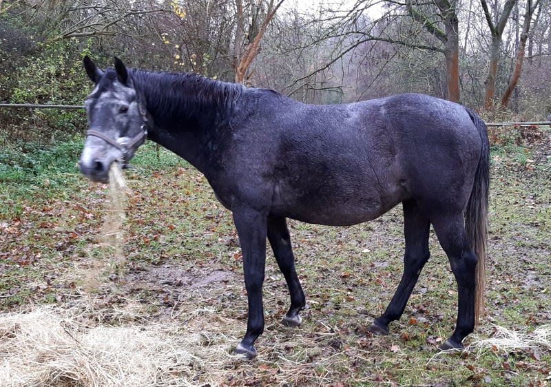 Zum Verkauf steht eine 5-jährige Holsteiner Stute Nike II aus dem Stamm 104a tragend vom Bundeschampion Arezzo Man. Die Stute ist angeritten, sehr gut unter dem Sattel zu Händeln, auf dem Viereck sowohl im Gelände. Ihre Abstammung geht über die Spitzenhengste Shot-Gun, Stakkato-Gold, Carthago, Acodetto, Coriander, Schampus xx. Die Mutter stammt aus der Zucht von Prof. Dr. H. Schmidt. Der Stamm 104a zählt zu den erfolgreichsten der Holsteiner Zucht und die Stute ist verwandt mit solchen Größen wie Contendro I, Branzau und Rettina, die 9-jährig das Deutsche Springderby gewann. Diese Stute ist auch 5. Urgroßmutter der Nike II. Der Hengst Arezzo-Man spricht für sich als Bundeschampion und ist im Besutz von Richard Vogel. Seine Nachkommen sind jetzt schon sehr gefragt, bei den Fohlenauktionen im Jahr 2025 wurden einige für 17.000 - 20.000 EUR versteigert. Die Stute fohlt Anfang Mai 2026 und hat bisher 2 Fohlen ohne jegliche Probleme zur Welt gebracht und sehr gut groß gezogen. Ich freue mich auf Ihre Anfragen Ort: 06456 Arnstein (Harz) Ortsteil Welbsleben