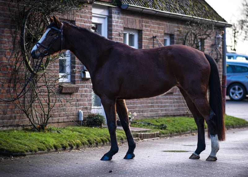 Opalia ist eine 2021-geborene Holsteiner Stute aus unserer Familienzucht. Sie wurde im letzten Jahr langsam schonend angeritten und steht noch am Anfang ihrer Ausbildung. Sie geht schon brav in allen Grundgangarten und kennt kleine Ausritte. Auch erste Sprünge unter dem Sattel hat sie schon gemacht. Wie man an den Freispringvideos erkennen kann, macht sie einen guten Sprung. Opalia ist vom Wesen her lieb und dem Menschen zugewandt. In manchen neuen Situationen ist sie noch etwas unsicher, sodass sie jemanden braucht, der ihr die nötige Sicherheit vermitteln kann. Sie ist gesund und Röntgenbilder aus dem letzten Jahr liegen vor. Da sie noch am Anfang ihrer Ausbildung steht, nur an erfahrene Reiter oder junge Reiter mit guter Unterstützung und nur in gute Hände abzugeben. Keine Händler. Für weitere Fragen stehen wir gerne zur Verfügung.