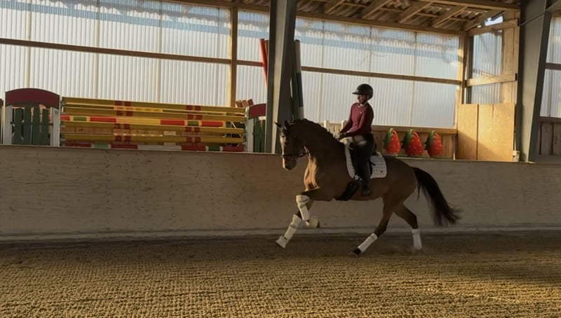 💎 Diamond in the Rough – 5-year-old Holsteiner mare with quality and heart This 5-year-old Holsteiner mare combines athletic ability with personality – a horse that appeals to a wide range of riders. She moves with plenty of energy uphill, demonstrating excellent basic gaits in all three disciplines, while being pleasant and straightforward to ride. She is rideable, clear-minded, and consistently reliable – qualities that make her highly attractive to both ambitious competitive riders and leisure riders alike. Whether for dressage work, relaxed hacks, or free jumping – she handles everything with ease and shows great scope and ability over fences. Her versatility makes her a horse with numerous opportunities. Her temperament is especially noteworthy: friendly, affectionate, and cuddly – a true heart horse in daily handling. She wants to please, works with motivation, and impresses with her positive attitude. A horse suitable for riders with different goals – from an ambitious sport partner to a dependable leisure companion. ⸻ 📍 Location: Rosenheim 📞 Contact gladly by phone or WhatsApp 📧 Also reachable via email ❗ Please refrain from inquiries through Messenger