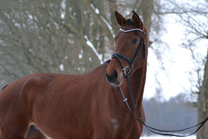Luna was ridden late in her training but has developed well in her education. At 5 years old, she has completed her first season, achieving wins and good placings in Jumping Horse A* and A**. She is very eager to learn and shows caution at the jump, with jumping ability suitable for more than just A and L jumping classes. The mare should continue to be supported to fully showcase her sporting potential. Luna is well-behaved under the rider, in the field, and in handling – including with children. She has a current health certificate with X-ray images from September 24, 2025. The X-rays show no findings.