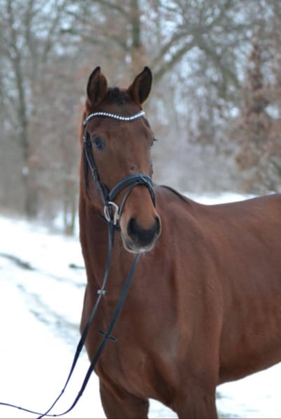 Luna wurde spät angeritten, hat sich in der Ausbildung gut entwickelt und ist 5-jährig ihre erste Saison gelaufen mit Siegen und guten Platzierungen in Springpferde A* und A**. Sie ist sehr lernwillig und vorsichtig am Sprung und hat Sprungvermögen für mehr als A und L Springen. Die Stute sollte weiter gefördert werden um ihre sportlichen Qualitäten zeigen zu können. Luna ist brav unter dem Reiter, im Gelände und im Umgang - auch mit Kindern. Sie hat eine aktuelle AKU mit Röntgenbildern vom 24.09.2025. Die Röntgenbilder sind ohne Befund.