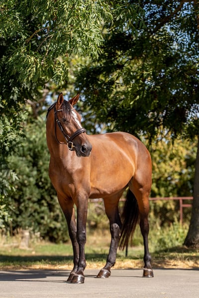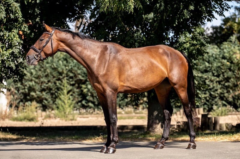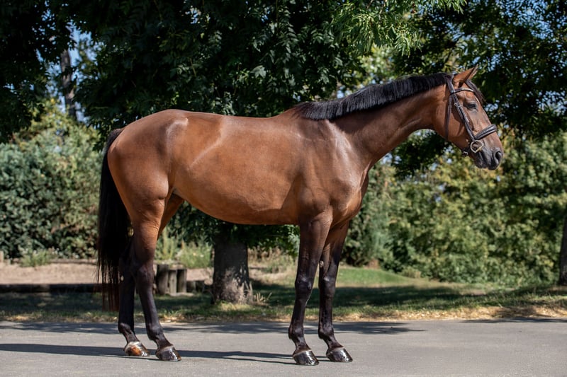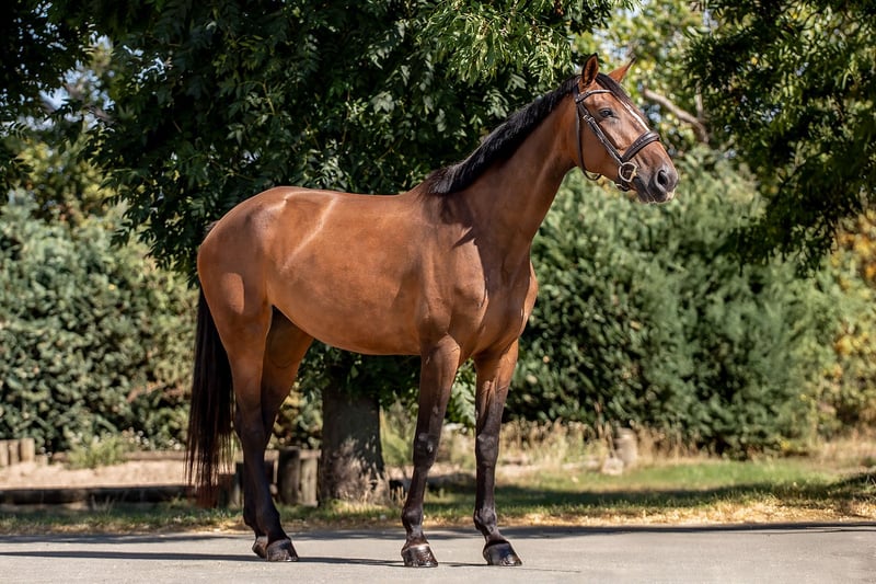 With Umbra, we present a five-year-old mare who already impresses with her great potential and motivated work ethic. She has placed up to A** in show jumping competitions and has impressively demonstrated her versatility in her first eventing test E with a score of 7.6. In daily training, Umbra proves to be an engaged partner. She responds sensitively to the reins, learns quickly, and gives her rider a very good feeling – especially in the canter, where she showcases her strength, dynamism, and joy in movement. In the field, she is safe, brave, and calm, both alone and in a group. She also handles loading and the competition environment without any excitement – with a natural ease that makes her a true professional even amidst the hustle and bustle of the warm-up arena. Umbra has everything one could wish for in the future of eventing: athleticism, heart, and character. Due to her sensitivity and potential, we do not recommend her as a beginner's horse, but rather for riders who enjoy further developing a talented young horse and growing together.