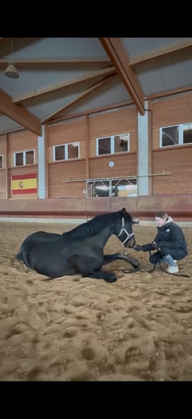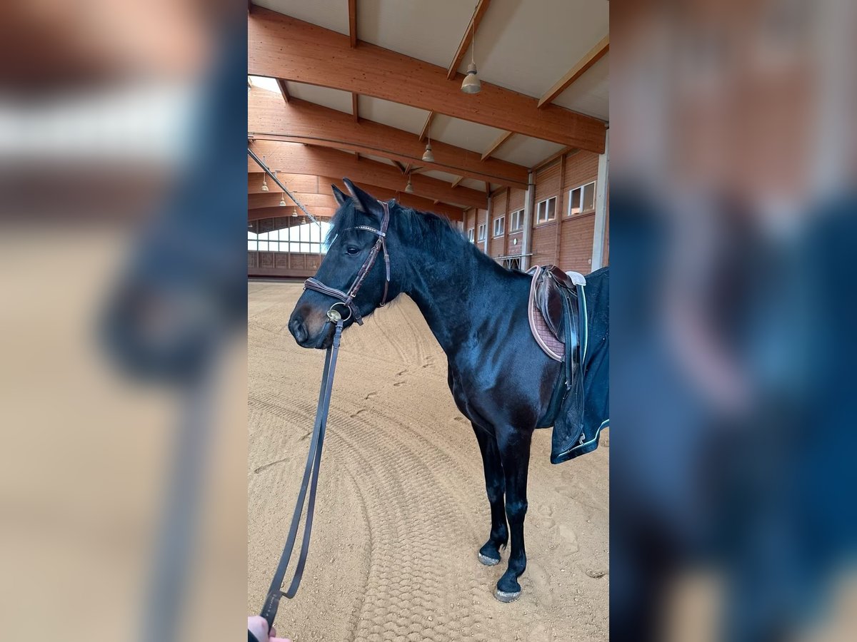 With a heavy heart, I am seeking a new home for my 2020-born Spanish x Holsteiner mare (Uno I), standing approximately 1.63 meters at the withers. Montana comes from our own breeding and has been raised and handled with care. Her mother, a Spanish mare with a high Carthusian influence, is available for viewing on-site. Her sire is the Holsteiner stallion Uno 1, descending from Uriko - Colman, based in Marbach. This makes her also an interesting prospect for breeding. I am selling Montana because I want to pursue higher-level competition, which I cannot dedicate enough time to with her. She is a horse that seeks to be challenged and developed. She enjoys working and especially has great fun in liberty work. In a short time, she has learned Spanish walk, shoulder-in, lateral movements, circles, lying down, and mounting (all also free) on command. She is also an excellent partner in the field, promising wonderful riding hours, whether in a group or alone. I prefer to find experienced leisure riders who enjoy riding out and working with her on the ground or in liberty. She has great potential and motivation in this area, and I hope she will be further encouraged here. Montana is easy to gymnasticize and offers very comfortable gaits. In the arena, she always responds lightly to aids but is by no means overly sensitive. She also enjoys small jumps. Due to muscular sensitivity in her hip, she is not suitable for competitive sport. After excessive or intense training, especially jumping, she may show slight irregularity in her gait—however, as a leisure horse (confirmed by a veterinarian), she shows no signs of this under normal riding conditions. She had a longer break from riding in the middle of last year. For the past three months, she has been ridden again for leisure and is doing very well. Additionally, I am happy to stay in contact with the new owner after the sale and receive occasional updates. Montana has been my little girl’s dream since birth and is very dear to me. If you feel addressed by this, please don’t hesitate to contact me! WhatsApp: 01702924716 Best contact by phone: 01709343872 Accessories can be purchased at an additional cost.