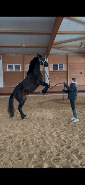 Schweren Herzens suche ich für meine 2020 geborene Spanier x Holsteiner ( Uno I ) Stute, mit einem Stockmaß von ca. 1.63m, einen neuen Platz. Montana ist aus unserer Zucht und behütet aufgewachsen sowie geritten worden. Ihre Mutter (Spanier mit hohem Kartheuseranteil) ist vor Ort und kann besichtigt werden. Ihr Vater ist der Uriko - Colman abstammende Holsteinerhengst Uno 1 aus Marbach. Dadurch wäre sie auch für die Zucht interessant. Verkauft wird Montana da ich in den höheren Sport einsteigen möchte, wodurch ich ihr zeitlich nicht gerecht werde. Sie ist ein Pferd welches gefallen und gefördert werden möchte. Sie arbeitet gerne mit und hat vor allem an der Freiarbeit großen Spaß. In kürzester Zeit hat sie so Spanischen Schritt, Schulterherein, Seitengänge, Zirkeln, Liegen und Steigen (alles auch Frei) auf Kommando gelernt. Auch im Gelände ist sie ein super Partner und garantiert tolle Stunden im Sattel. In der Gruppe sowie allein. Ich suche am liebsten erfahrene Freizeitreiter die gerne ins Gelände gehen und am Boden / Frei mit ihr Arbeiten. Gerade hier hat sie großes Potenzial und Motivation, bei der ich mir wünsche, dass sie hier gefördert wird. Montana ist leicht zu gymnastizieren und bietet sehr bequeme GGA. In der Bahn zeigt sie sich immer leicht an den Hilfen, jedoch auf keinen Fall übersensibel. Auch an kleinen Sprüngen hat sie Freude. Sie ist jedoch aufgrund einer muskulären Sensibilität an der Hüfte nicht für den Sport geeignet. Nach übermäßigem / starkem (vor allem Spring- ) Training zeigt sie einen leichten Untakt. - Als Freizeitpferd (durch Tierarzt bestätigt) jedoch ohne Probleme ohne Anzeichen. Sie hatte Mitte des letzten Jahres eine längere Reitpause. Seit ca. 3 Monaten wird sie wieder freizeitmäßig geritten und zeigt sich super. Zusätzlich freue ich mich, nach dem Verkauf Kontakt zum neuen Besitzer zu halten und mal ab und an Updates zu bekommen. Sie ist seit ihrer Geburt mein kleiner Mädchentraum und liegt mir sehr am Herzen. Falls du dich hier angesprochen fühlst, melde dich gerne bei mir! WhatsApp: 01702924716 Telefonisch am Besten direkt unter 01709343872 Zubehör kann gegen Aufpreis mit erworben werden.