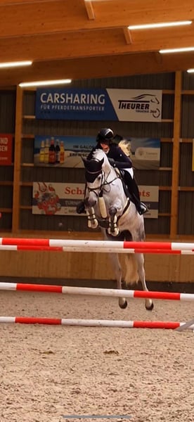 Due to the discontinuation of breeding for age reasons, we are selling our beautiful mare Larissa II. She has been ridden by a young girl whose mother bought Ginella, and she successfully competes up to 120 cm in show jumping. Larissa has a lot of presence, a pretty face, and is strong-moving with an expansive walk. She is very well-mannered in handling. She also has talent for dressage. Larissa was the champion mare of the Körbezirk Plön. Her sire is Origi d'O by Diamant de Semilly. The dam Ginella is by Crumble - Colman. Larissa has a colt foal at foot (also by Chicago Blue), which will be weaned in October and is for sale. All maternal ancestors have been bred by us (4 generations)! This is Larissa's 3rd foal. Her 1st foal is a filly by Cornet's Obolensky. All foals are correct, strong-moving with a lot of presence. The foals are still in our possession and can be viewed; they are also for sale. We have been breeding Holsteiners for over 50 years, but unfortunately, we now have to part with them as we have no successors.
