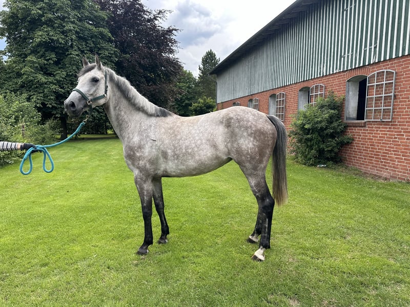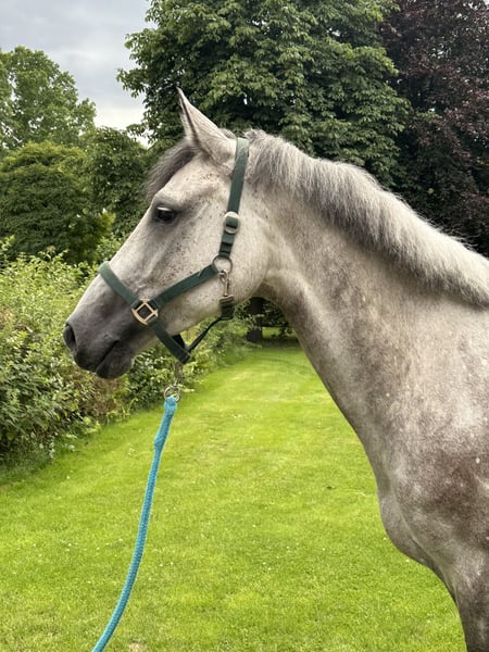 For sale is a beautiful Holstein mare, born in 2018. This elegant gray mare impresses with a height of 166 cm and is specially trained for jumping. GK Katja shows great potential in free jumping and impresses with her willingness to perform and her impeccable character. Just 6 weeks under saddle, she is very well-behaved and always wants to please her rider. As GK Katja has only been under saddle for 6 weeks, she needs a rider who is familiar with training young horses. GK Katja does not show any naughtiness and is also very sweet to handle. She is ideal for ambitious riders who are looking for a reliable partner for future show jumping. Of course, we also have a whole range of other very promising young horses on our farm: Whether foals, yearlings, broodmares or riding horses - if you are looking for high quality, you have come to the right place. Feel free to make an appointment with us, we look forward to hearing from you! www.gestuet-kriseby.de