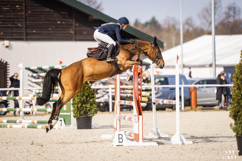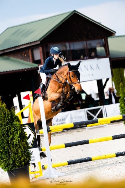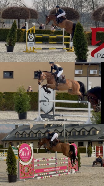 Come fly with me 2019 COME IL FAUT x CHIN CHAMP Beautiful Holsteiner mare experienced up to 115 cm with potencial For much more She has very quick legs and really like to jump ! 166 cm She was ridden by amateur so she is not perfect in dressage but will develop with good rider. Always on other side of the jump ! Very honest horse , very sensitive . Calm and safe from ground . Has xrays she is clean . Located Poland
