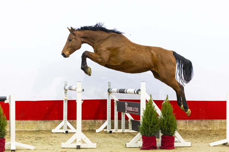 Chara comes from a strong pedigree combination of Chopin and Crown Z, which is immediately visible in her way of jumping. She is still green and recently arrived from the breeder, but already shows good willingness, quick reactions and sufficient scope. She is fast off the ground, stays alert and shows an attractive, athletic jump. A versatile mare who could later suit multiple disciplines. Her sire Chopin VA, by Casall, jumped successfully up to 1.60m and is known as an excellent producer, with offspring showing scope, mentality and rideability. Her dam Nmensa Z has already produced a 1.30m jumper, and further in the damline several horses are found that jumped 1.40m and above. A proven family that consistently delivers sporthorses. Chara comes from one of Germany’s largest and most reputable sporthorse breeders. She is completely unbroken and knows no more than a halter. Having lived exclusively in the field, she has had the time to grow correctly and develop strength in her body and legs. An honest and pure young mare now ready to begin her training. With her type, jumping style and versatile pedigree, Chara offers strong potential — for sport as well as future breeding. This horse was previously auctioned, but as the buyer did not meet his obligations, the payment was never completed. The horse itself is exactly as described. Perhaps it’s no coincidence the previous buyer didn’t pay — this horse was simply meant for you!