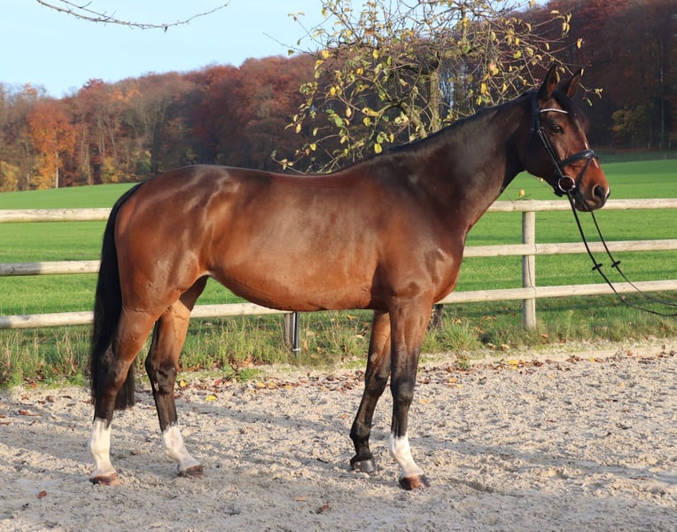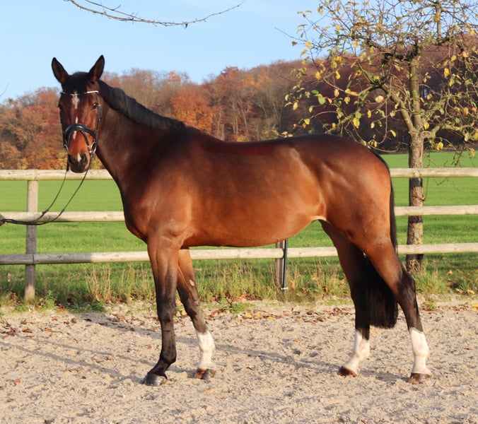 For sale is an 8-year-old all-round mare. Alma is being sold as a versatile leisure horse. At home, she confidently jumps a safe A/ L-level course, masters flying changes, and moves securely in contact in all three basic gaits. She is also well-behaved in the terrain and has a wonderful temperament. Her height is 1.73 meters. She is farrier- and trailer-friendly, naturally healthy, with no signs of koppen, weaving, or other vices.