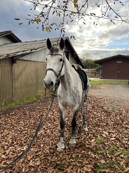 Springstute Holsteiner Jahrgang 2017 Zum Verkauf steht eine 2017 geborene Holsteiner Schimmelstute, abstammend von Crumble aus der Santhana von Lasino. Die Stute präsentiert sich mit einem korrekten Fundament, harmonischem Körperbau und ausreichend Rahmen. Sie zeigt sich rittig, aufmerksam und lernwillig und verfügt über gute Grundgangarten. Im Springen überzeugt sie mit Übersicht, Vermögen und einer vorsichtigen Einstellung, dabei stets regulierbar und konzentriert. Im täglichen Umgang ist sie brav und unkompliziert, kennt das Handling im Stall. Eine interessante Nachwuchsstute für den Amateur- oder Sporteinsatz mit Perspektive im Springsport.