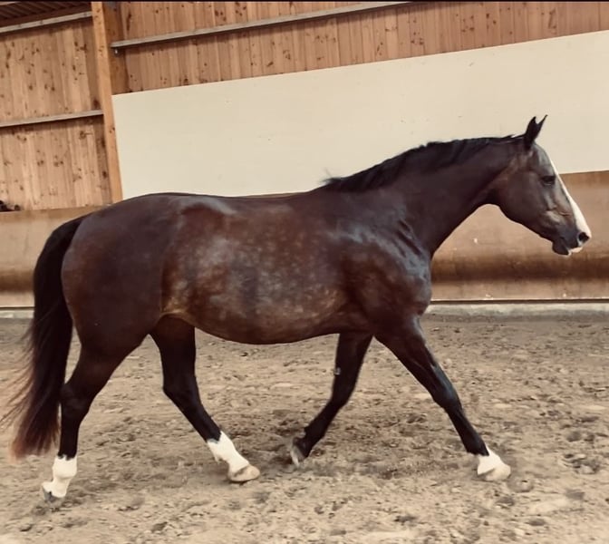 Sehr schweren Herzens habe ich mich dazu entschieden, einen passenden Besitzer für meine Stute zu suchen. Es handelt sich um keinen Notverkauf und ich würde sie nur hergeben, wenn sie ein 5*Zuhause auf Lebenszeit (bzw. mit Vorkaufsrecht) bekommt und sie ihren Menschen findet, der sie zu schätzen weiß und in ihr seinen neuen besten Freund findet. Cara ist eine fast 9 jährige Holsteinerstute und hat ein Stockmaß von 1,67. Sie war von 01/2025-06/2025 in Vollberitt und hat dort den Sprung zum richtigen Reitpferd gemacht :). Mit dem richtigen Reiter macht sie alles mit. Ob Dressur oder Springen, ob Halle oder Außenplatz, ob ausreiten oder Spazierengehen - das A und O, ist ein sicherer Mensch an ihrer Seite. Sie ist vom Typ her eine klassische Stute und einfach sehr dominant und kann im Umgang auch mal schwierig sein und testet auf jeden Fall gerne mal. Unterm Sattel zeigt sich davon allerdings gar nichts und sie arbeitet stets motiviert und absolut brav mit. Außerdem ist sie total mutig und unerschrocken. Im Springen ist sie Zuhause und hat richtig Spaß daran und springt aus jeder Lebenslage :). Auf Turnier wurde sie aber bisher noch nicht vorgestellt. Ich habe sie seit sie 10 Monate alt ist und es bricht mir das Herz, dass ich feststellen muss, dass ich nicht ihr passender Mensch bin (ich bin eher der ängstliche Reiter bzw. kann ihr in den Situationen wo es drauf ankommt, keine Sicherheit bieten). Wir haben viele Wege ausprobiert um zu einander zu finden - daher kennt sie auch die Arbeit nach Parelli und insbesondere die Liberty Arbeit macht mit ihr sehr viel Spaß. Ich wünsche mir so sehr, dass sie ihren Menschen findet, der sie so nimmt wie sie ist und sieht was für ein tolles Pferd sie ist. Ich glaube nämlich mit dem richtigen Partner an der Seite, geht dieses Pferd mit einem durchs Feuer. Ich hoffe man liest heraus, dass dies ein Verkauf FÜR das Pferd ist - weil ich mir einfach so sehr wünsche, dass sie ihren Partner in Crime findet, auch wenn das für mich bedeutet, sie loslassen zu müssen. Cara ist kerngesund, geimpft und regelmäßig beim Zahnarzt und Oteopathen vorgestellt. Platz natürlich vor Preis. Keine Händler oder Reitschulen!! Um Reittourismus zu verhindern, werden 25€ fürs Probereiten genommen.
