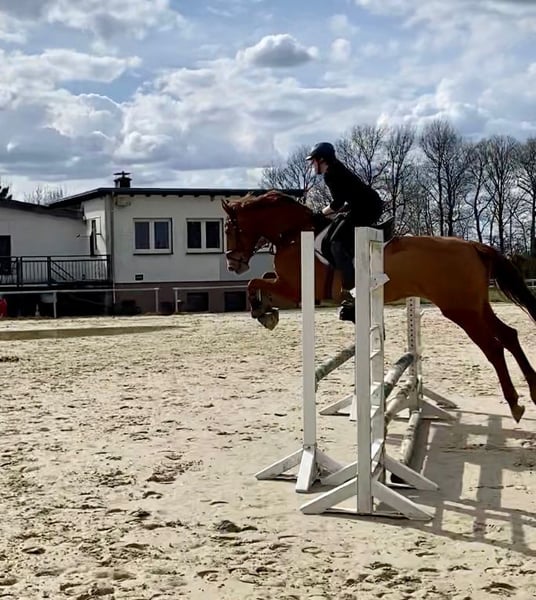 ✨ Chestnut Mare – 8 years old – 16.1 hh – Sporty & Motivated ✨ Reluctantly offered for sale due to family reasons. I am offering my 8-year-old chestnut mare Kindly One, approximately 16.1 hands tall, for sale. She is a performance-oriented, sensitive horse and therefore not suitable for beginners. With encouraging and consistent handling, she shows great motivation and is eager to further her training. 🏅 Sporty: - Placed in A-level show jumping - Confident and experienced in L-level courses at home - Good basic training, talented and eager to learn 🐴 Breeding & Health: - Gave birth to a foal at age 4 - Has a cervical vertebrae condition, which currently does not affect her in any way (inspection available upon request) 🐎 Management: - Experienced in herd life during summer and winter - Socially compatible and easy to handle Kindly One has great potential and is ideal for ambitious riders seeking a horse with heart, talent, and work ethic. If interested or for further questions, I look forward to hearing from you!