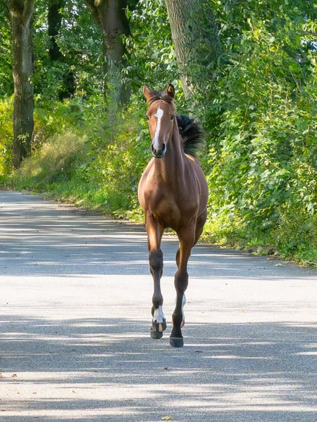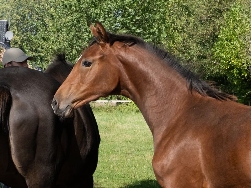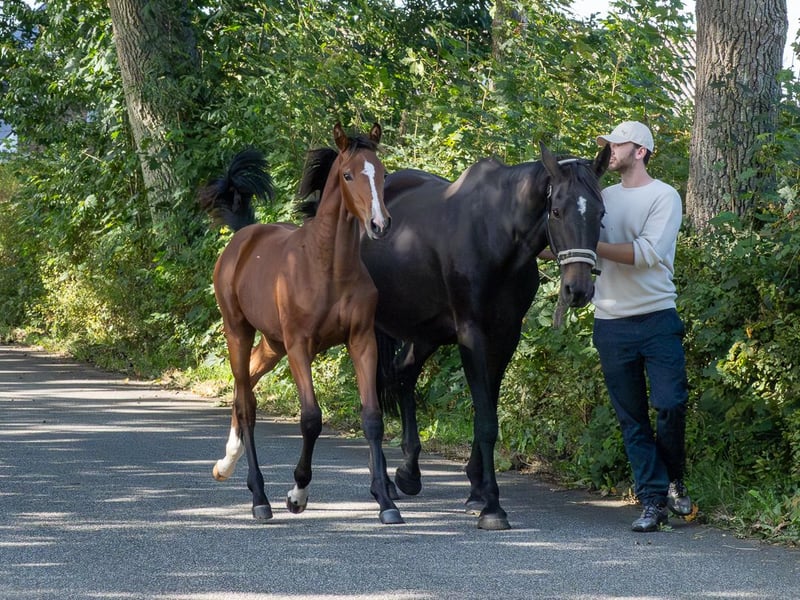Karla ist ein schickes Fohlen vom Holsteiner Hengst Keaton aus einer Mutter vom Ausnahmevererber Diamant de Semilly. Zwei Vollgeschwister zur Mutter sind erfolgreich in 1,45m Springen gegangen. Das Fohlen ist menschenbezogen und lieb im Umgang.