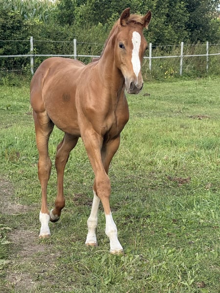 For sale is a promising Holsteiner stallion by Deichkind out of a mother by Amigo xx - Alcatraz - Wildfeuer - Anklang, born in May 2025. This elegant chestnut has great movements and is already very trusting. Expected final height will be around 170 cm. Dam line 318D1. He will be handed over in the fall with a solid foal ABC.