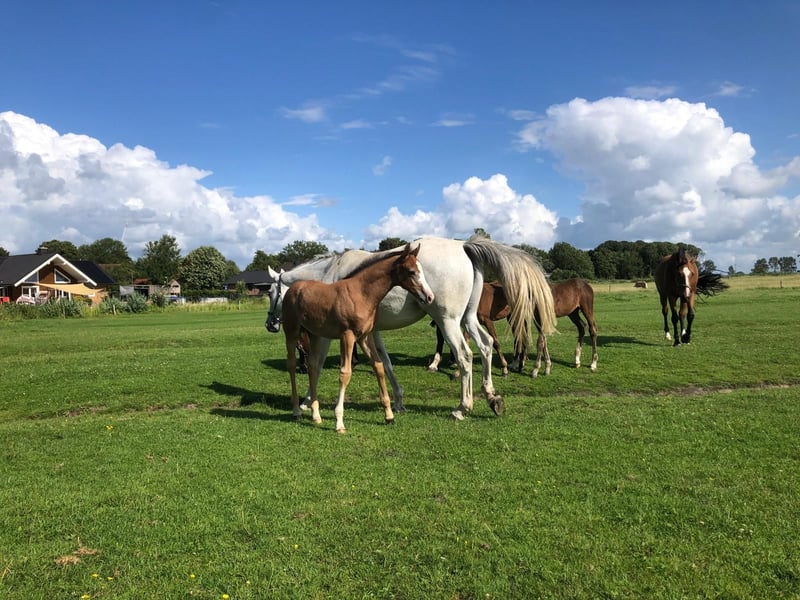 Oferuję na sprzedaż mojego obiecującego kandydata na ogiera holsztyńskiego. Clarimo Blue to niezwykle bystre źrebię z bardzo dobrymi podstawowymi chodami. Jego matka, India Blue, jest pełną siostrą ogierów Zornell 1 i 2. India Blue sama jest matką wielu źrebiąt aukcyjnych. India Blue, która była 1. rezerwową zwyciężczynią w Dithmarschen, została wyróżniona państwową lub związkową premią przez cztery pokolenia z rzędu. Sama ma również córkę od Cascadello, która została oceniona na 53 punkty. Pierwsze źrebię tej klaczy zostało w tym roku sprzedane na aukcji za 17 500 euro. Zypern, druga matka, jest państwową premiowaną pełną siostrą ocenianej na 55 punktów Utopii. Zyper jest pełną siostrą ogiera Cancoon, który według tekstu odniósł zwycięstwo w skokach przez przeszkody na wysokości 2,05 m. Kolejnym przykładem ogólnej jeździeckiej zdolności są trzy bezbłędne rundy Zornell 2 na mistrzostwach Europy dla młodych jeźdźców. W razie pytań proszę dzwonić.
