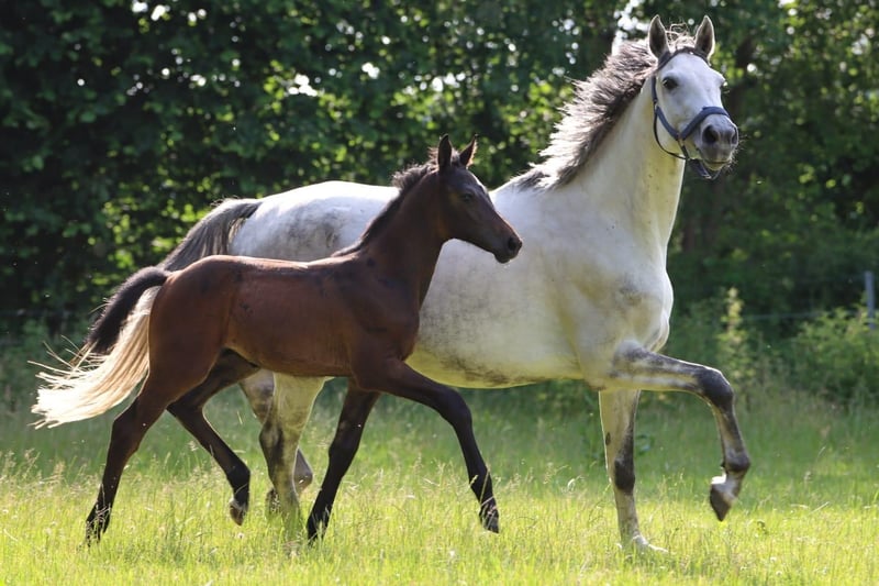 Großrahmiges, typvolles, ausdruckstarkes holsteiner Hengstfohlen von Charaktervoll aus Mara - Catch - Colmann, Stamm 18A2, geboren 05/2025, wird Schimmel, aus Familienzucht. Er ist aufgeweckt, bewegungsfreudig, bewegungsstark, menschenbezogen und genießt seine Streicheleinheiten