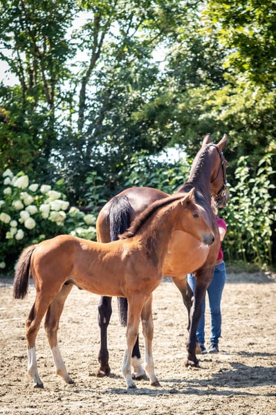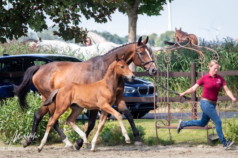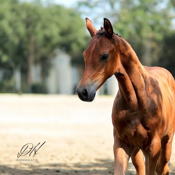 Champion colt by Vigado! His dam Zoe has a state premium and was herself successful in dressage and show jumping competitions up to class L under a junior rider. This dam line has already produced licensed stallions. Line 628b. Viscaro is correct, beautifully marked, with a great face. He is super sweet to handle, intelligent and bright. He has very good movements. Price VHS.