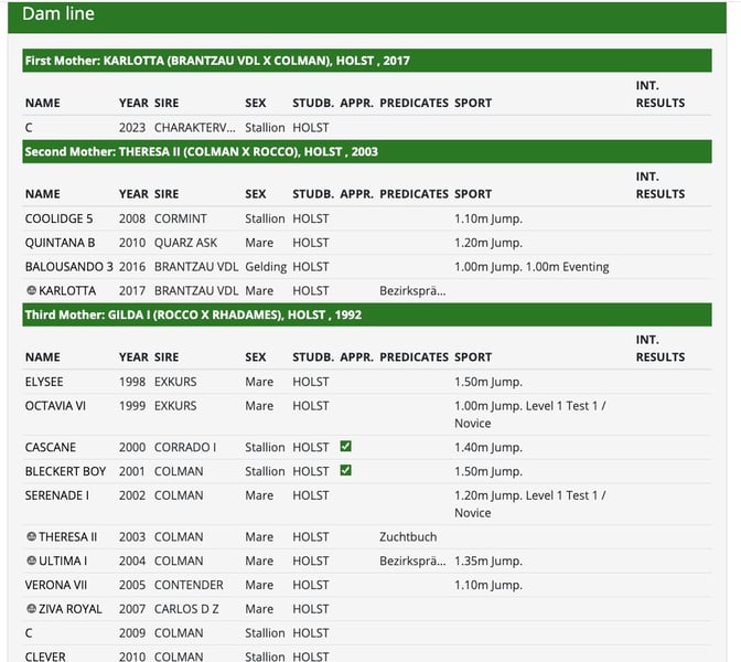 Chador ist ein junger Holsteiner Hengst (Jg. 2023) mit klarer Sportausrichtung und einem außergewöhnlich unkomplizierten Charakter. Im täglichen Umgang ist er super brav, gelassen und macht alles zuverlässig mit. Springabstammung: Vater: Charaktervoll HV (1,45 m) – Sohn von Comme il Faut aus der Contendro I-Mutterlinie. Mutter: Karlotta (Bezirksprämie) von Brantzau VDL (v. Baloubet du Rouet) aus einer bewährten Holsteiner Familie mit Springpferden bis 1,50 m in der direkten Mutterlinie (u. a. Elysee, Bleckert Boy). Ausbildung/Handling (altersentsprechend): - Anhänger fahren / Verladen & Transport - Longieren - Führmaschine - Freispringen Weitere Informationen & Besichtigung Gerne gebe ich bei ernsthaftem Interesse weitere Auskünfte zur Abstammung, Aufzucht und zum aktuellen Ausbildungsstand. Eine Besichtigung ist nach Vereinbarung in Bargenstedt möglich, damit Sie Chador in Ruhe kennenlernen können. Bitte melden Sie sich kurz per Nachricht oder telefonisch.