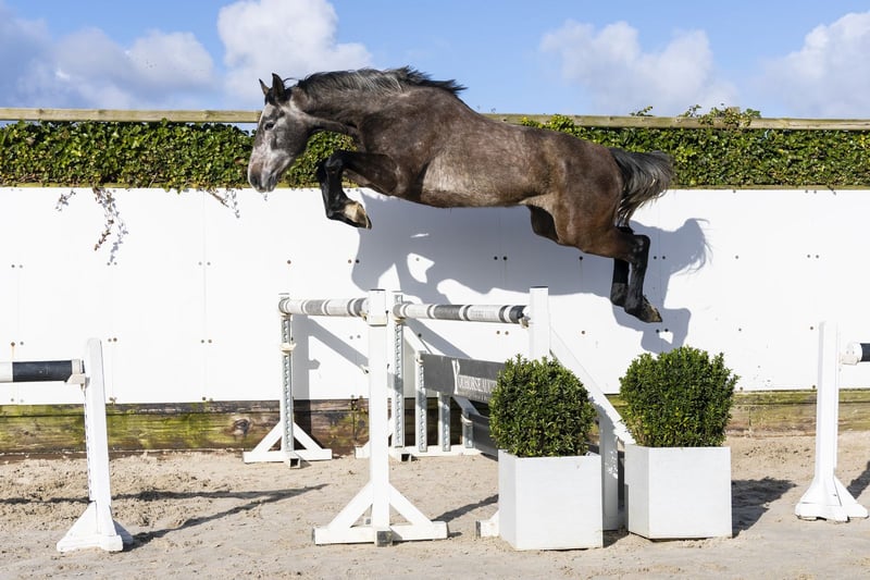 Buster is een schimmel met veel uitstraling en vermogen. Hij springt met zeer veel kracht en laat een goede achterbeentechniek zien. Hij doet alles met veel gemak en beschikt over een grote, opwaartse galop. Een paard dat vermogen uitstraalt en voldoende bloed toont. Het achterbeen komt goed onder het lichaam, wat hem in de toekomst extra kwaliteit en gebruiksgemak zal geven. Een paard dat zich makkelijk ontwikkelt en later zeker een hoger parcours kan springen. Zeer interessant voor ruiters die willen doorgroeien naar een hoger niveau in de sport. Vader Brantzau VDL springt op 1.40m niveau en is een zoon van Baloubet du Rouet (1.60m Grand Prix). Hij geeft vermogen, scherpte en instelling door en zijn nafok laat steeds meer kwaliteit zien. Moeder Wasa I is een dochter van Calido I (1.60m) en komt uit een zeer sterke Holsteiner stam. De moederlijn is bijzonder sterk met veel sport op niveau: Oh Sissi – 1.55m Crown Prince – 1.50m Collmar – 1.50m Braveheart Jump – 1.45m Argento 21 – 1.45m Toxic Boy – 1.45m Chablise – 1.45m Zenzero – 1.45m Certo – 1.40m Quicknick – 1.40m Een stam die structureel paarden op 1.40m tot en met 1.55m niveau brengt.
