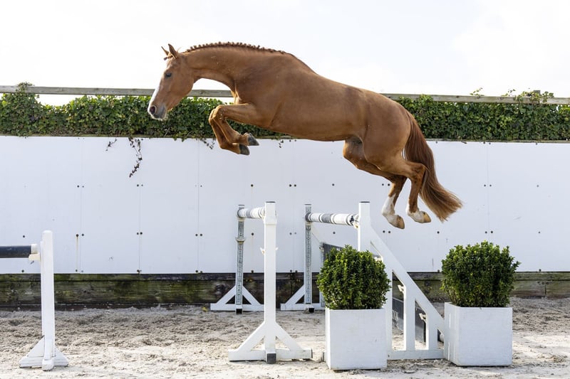 Vulkano T is a horse with a beautiful model and a lot of presence. He stands out with his big canter and shows a good attitude. A horse that tries hard and presents himself well. He moves very easily, with a good trot and a lot of suppleness. His way of moving and balance make him interesting for multiple disciplines. He would also not look out of place in the dressage ring. In our opinion a versatile horse with quality and broad potential for the future. Sire Vigado is a son of Vigo d’Arsouilles (1.60m) and shows a lot of scope and attitude, with performances up to 1.45m level. Dam G-Souvenier T is a daughter of Skyflight (1.40m) and comes from a strong line with clear dressage influence. The damline is notably versatile with both jumping and dressage performance: Don William – Grand Prix dressage Royal Chester – Grand Prix dressage Shadow’s Dream – PSG/Inter I Albertino – 1.40m jumping A family that combines versatility and quality.