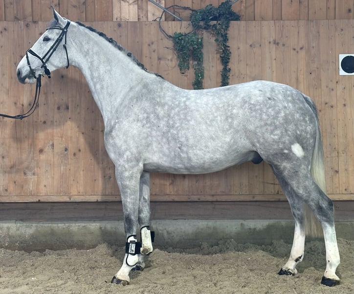 Sehr schöner und großrahmiger Wallach der mit außergewöhnlich vielen Springvermögen ausgestattet ist . Er ist einfach und solide zu reiten , und zeigt sich bei seinen täglichen Aufgaben immer sehr lernwillig und brav .
