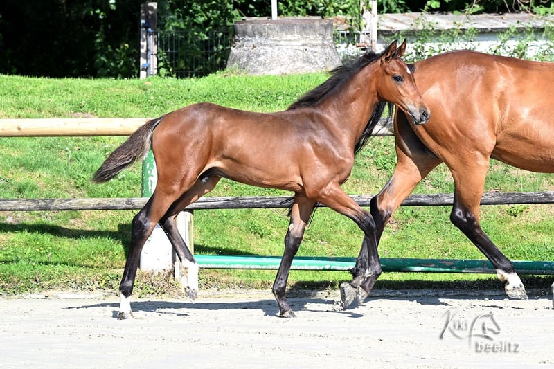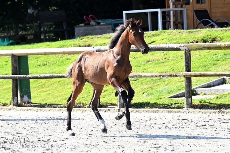 Holsteiner Hengstfohlen "Unisono FJ" Top-Abstammung, prämiert und bewegungsstark - geboren am 06.04.2025 - Vater: Uno I, ein Sohn des Uriko, über 1,45 m platziert - Mutter: Cassandra, Cassini II x Calypso I x Landgraf x Marlon, aus dem Erfolgsstamm 671 - ein Halbbruder des Fohlens geht international 1,45 m Springen - das Fohlen wurde prämiert und hat den dritten Platz im Endring erreicht - sehr gute Bewegungen in allen drei Grundgangarten, locker und dynamisch - typvolles und sportliches Fohlen mit einem korrekten Fundament und einem schönen Gesicht Unisono war von Anfang an menschenbezogen und leicht händelbar. Er kennt Tierarzt und Hufpflege, ist halfterführig und lässt sich gerne putzen. Durch unsere kleine Herde mit drei Stuten und zwei Fohlen ist er gut sozialisiert. Wenn Sie Interesse oder Fragen haben, melden Sie sich gerne. Platz ist uns mindestens genauso wichtig wie Preis.