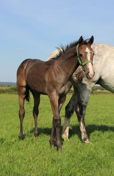 À vendre, ce grand foal Holsteiner par Uricas v/d Kattenvennen, issu d'une jument Mylord Carthago x Ibisco xx. Stamm 2543. Il est très doux et bien élevé. Il connaît la manipulation au licol et la pose des fers.